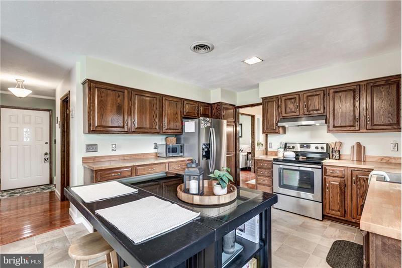 Welcome to your dream retreat in Hampstead, Maryland, where pristine upgrades meet tranquility on over two picturesque acres. Surrounded by mature trees, this property ensures privacy while providing a serene escape from the hustle and bustle of everyday life. As you step inside from the peaceful front porch, you are greeted by hardwood flooring and a warm, inviting living room, which welcomes an abundance of natural light through its charming bay window. This space seamlessly flows into the adjacent formal dining room—perfect for gatherings and entertaining.