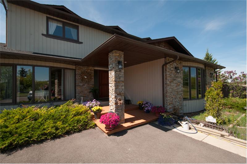 Updated 2 storey on 2.3 acres with mature landscaping. This home features a total of 5 bedrooms, and 3.5 baths. Updated kitchen with light granite counters, stainless steel appliances, large island. Huge master bedroom with fireplace and a balcony to enjoy the spectacular mountain view. Home is finished with a sunken living room, and family room and features a formal dining room, and main floor den. Basement is developed with 2 bedrooms a full bath and rumpus room. Home is beautifully situated on 2.3 acres and includes full landscaping. There are many trees, plants, and shrubs. Also for