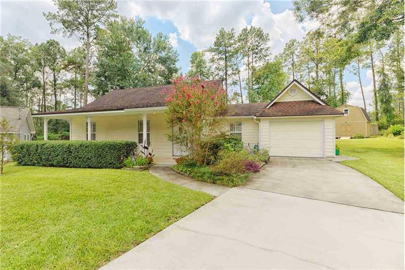 Adorable and well maintained 3/2 with a 2012 roof! The living room features a real wood fireplace, vaulted ceilings and plantation shutters. Relax on the rocking chair front porch or the over-sized patio out back overlooking the fire pit. The 2 story 16x16 shed in the corner of the large back yard can easily double as a workshop AND additional storage. Convenient to shopping, dining and easy access to I-10 - don't miss this one before it's gone!
