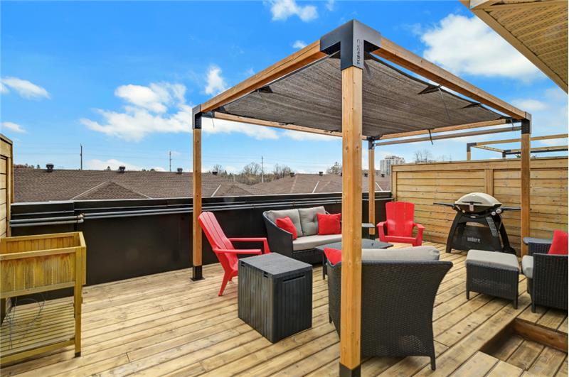 Modern 3-storey 2020 townhome with den, 2 beds, 2 baths, rooftop patio, garage, and stylish open layout. Near transit, shops, hospital. POTL fee \$121.72/mo covers snow removal & garbage pickup.