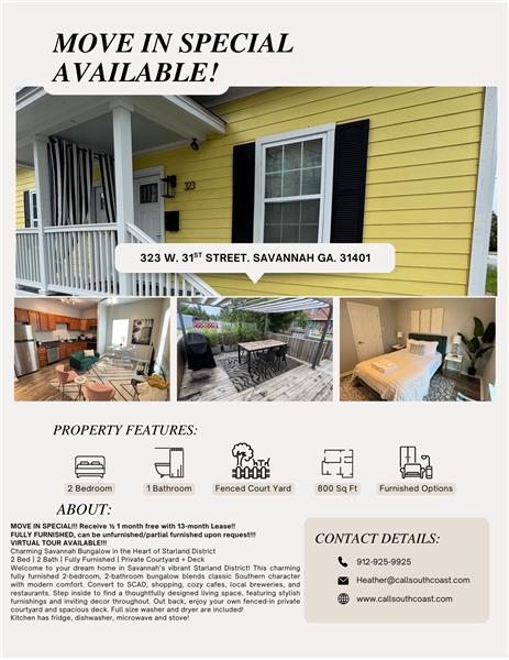 323 W 31st Street Rent: $1,795 Available: Immediately Pets: Allowed with approval Furnishing Options: Fully furnished, partially furnished, or unfurnished Virtual Tour: Available upon request 2 Bedroom, 2 Bath Bungalow in the Starland District This bungalow offers a flexible furnished or unfurnished setup along with a functional layout in a convenient Starland District location. Interior Features 2 bedrooms and 2 full bathrooms Flexible furnishing options Stackable washer and dryer included Kitchen equipped with: Refrigerator Stove Dishwasher Microw ...