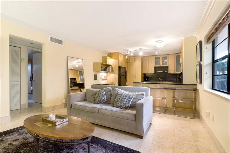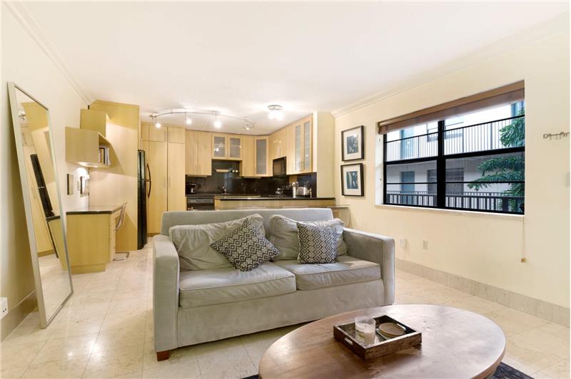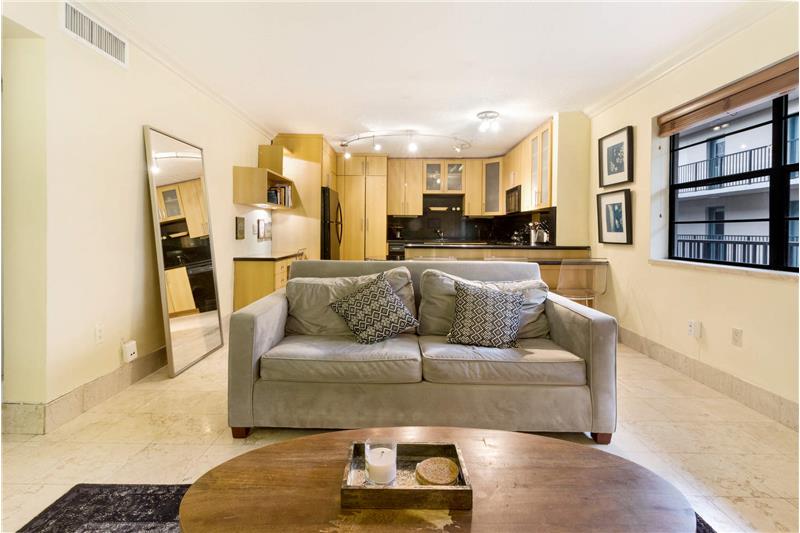 Absolutely DELIGHTFUL Coconut Grove 2/1! Beautifully remodeled with great attention to detail. Stunning and larger kitchen than you will find in most condominiums, marble floors and elegant bathroom. This unit has been loved and it shows! Newer AC means you can relax knowing you can just move right in! Equally sized bedrooms and one has a small balcony. Washer and dryer in the unit and additional ones on site. The complex actually has TWO swimming pools, a quaint BBQ area and lovely little seated tropical nooks through out. Walking distance to all the shops and restaurants Cocowalk has to offe