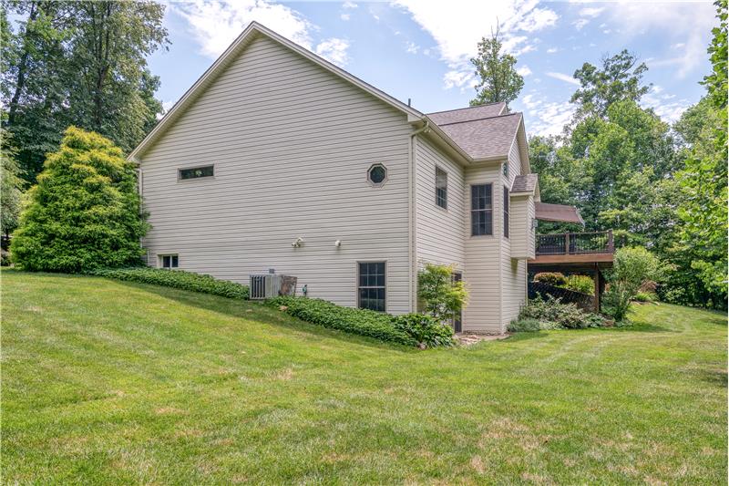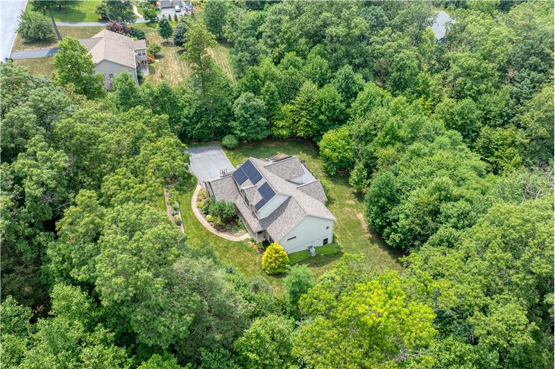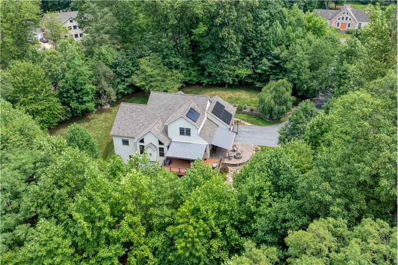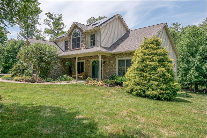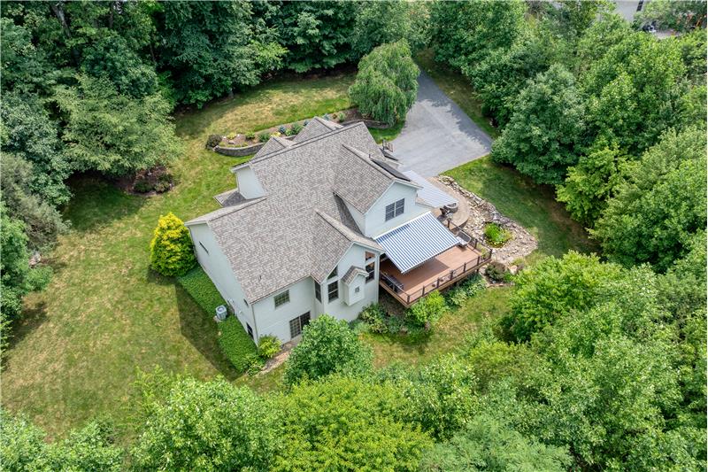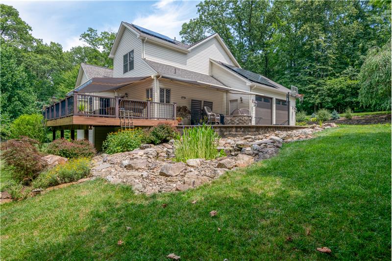 Stunning home with open floor plan, living room with stone fireplace and vaulted ceiling, beautiful first floor primary bedroom with remodeled bathroom and walk in shower. Upstairs you will find 2 bedrooms, a full bath and a loft area/ home office. Kitchen leads to large trex deck with adjoining patio space with firepit, overlooking beautiful waterfall with fishpond. Professionally landscaped and a private wooded 1. 4 acre lot. Finished walk out basement features family room, and plenty of storage.