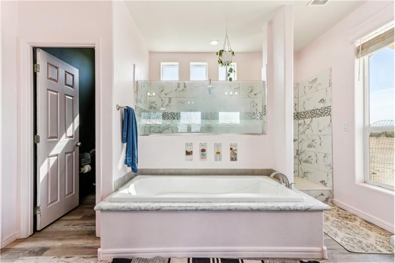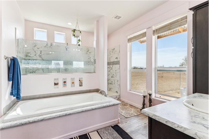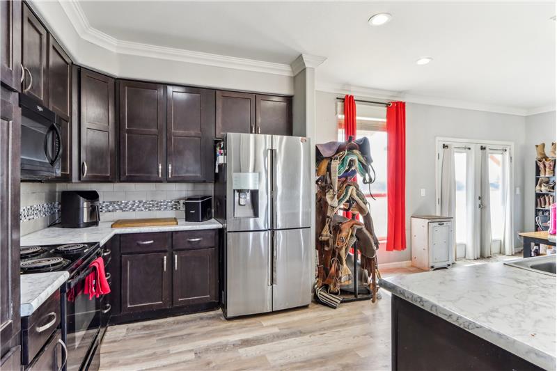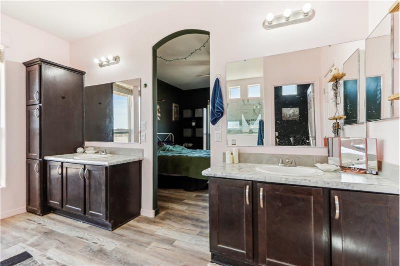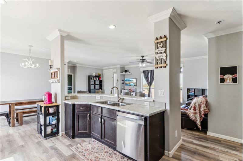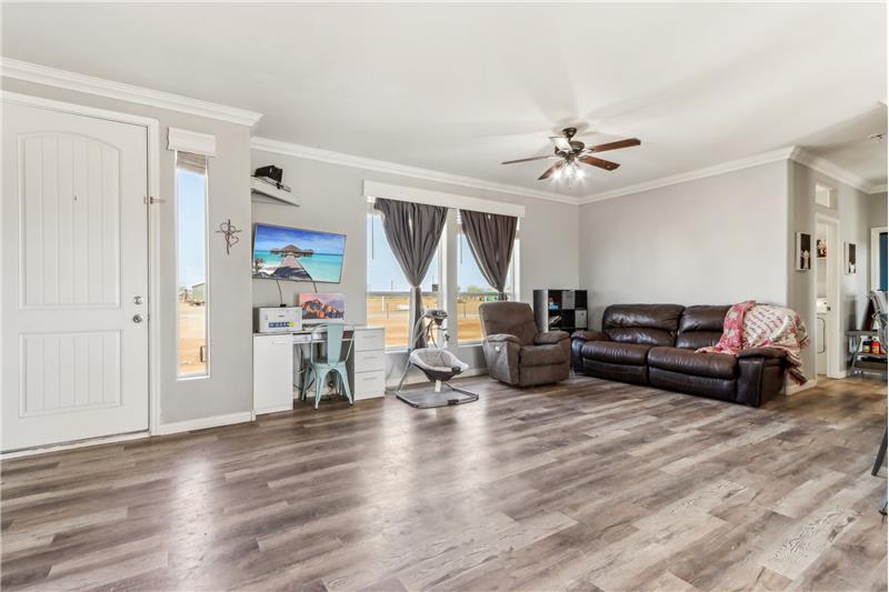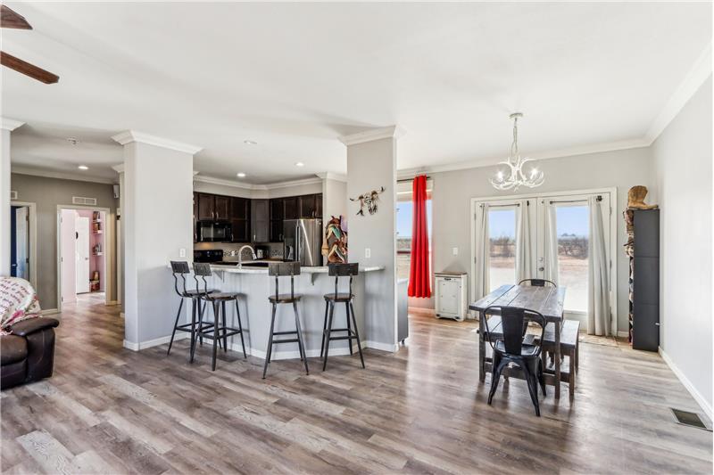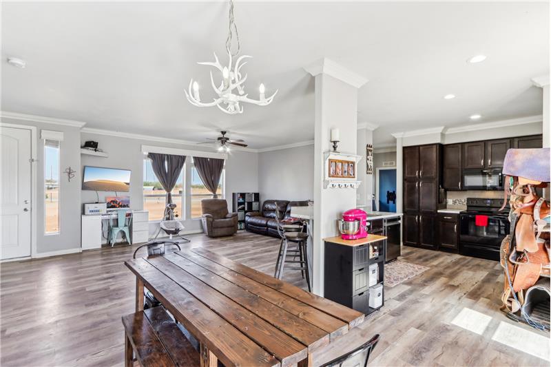 This beautiful horse property sits on over an acre of land with no HOA, offering plenty of space and freedom. The open kitchen is perfect for entertaining, featuring dark cabinets and luxury vinyl floors that flow seamlessly throughout the home. With a split floor plan, the layout provides both privacy and functionality. The master bathroom is a true retreat, featuring dual sinks and a giant walk-in shower, creating a spa-like experience. This property is ideal for those looking to enjoy the country lifestyle with all the modern comforts.