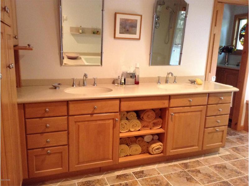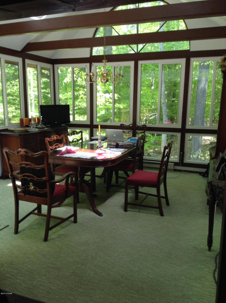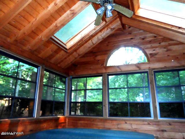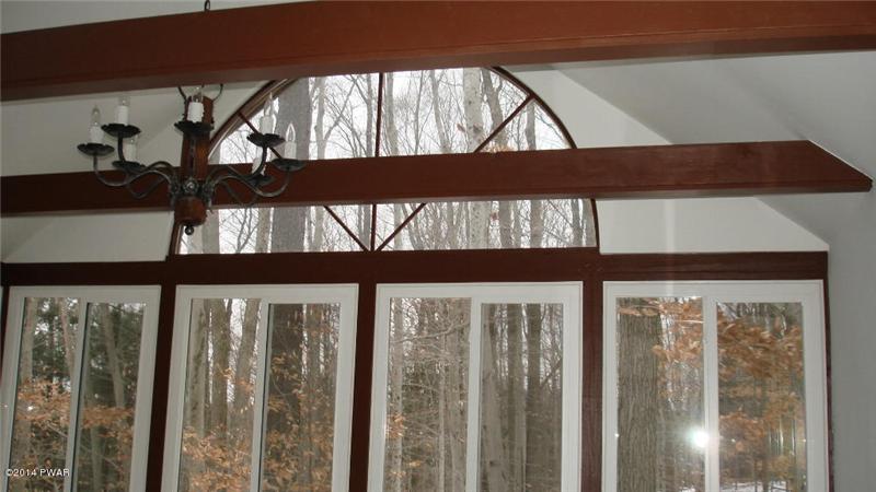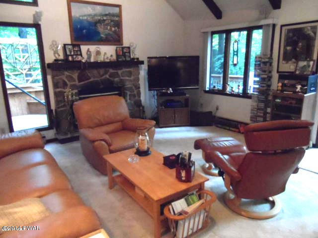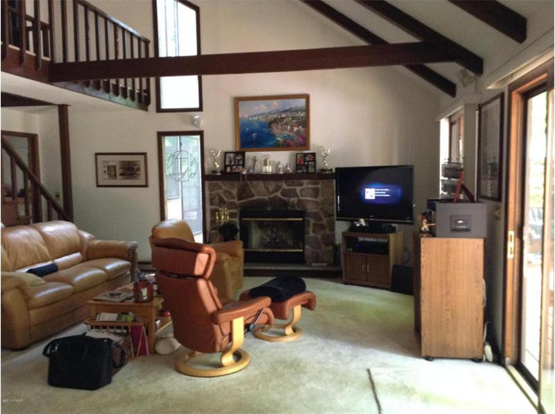 Home with ''wow'' look from a tiled main entrance, modern gourmet kitchen featuring a Viking gas range, Corian counter tops, cathedral ceiling living room with fieldstone fireplace! A Master Suite & bath the type found in luxury hotels, or relax in your own hot tub room which will be the envy of your friends. Entertain on a huge wrap around deck overlooking a wooded lot, floor to ceiling windows in dining room! A stone patio, family room, shed and more!
