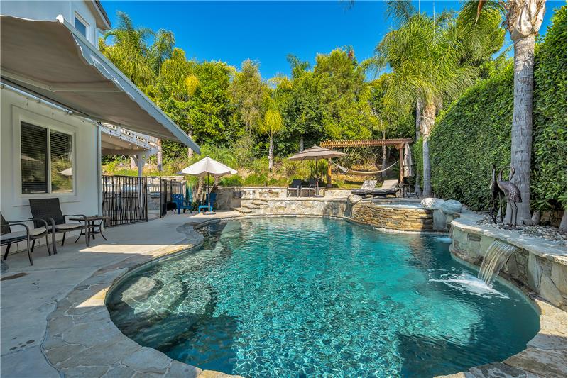 A Private Cul-de-Sac Retreat in Prestigious Silverthorne! This beautifully appointed 5-bedroom, 3.5-bath home features elegant interiors, a downstairs bedroom and full bath, and a spacious primary suite with balcony views. The entertainer’s backyard showcases a Pebble Sheen saltwater pool and spa, outdoor kitchen, and hillside orchard—offering a true resort-style lifestyle in one of Simi Valley’s most sought-after communities.