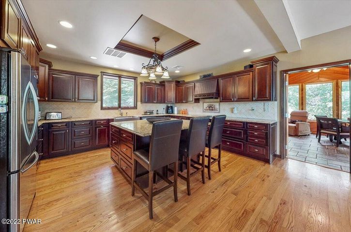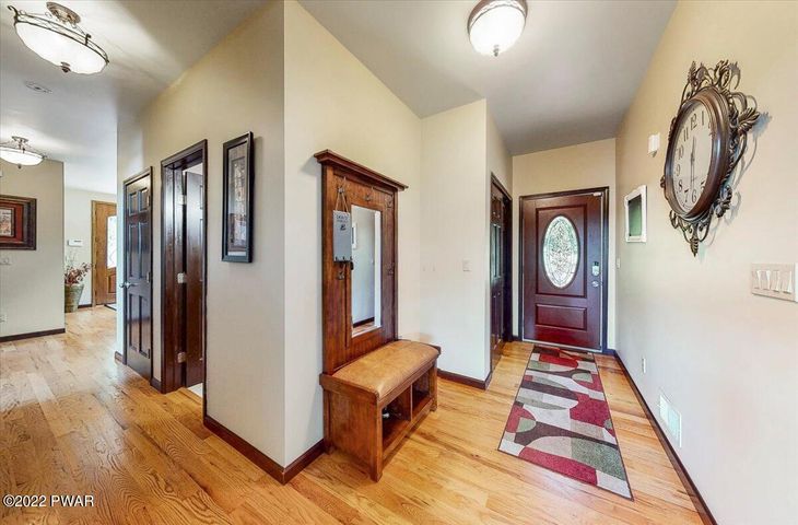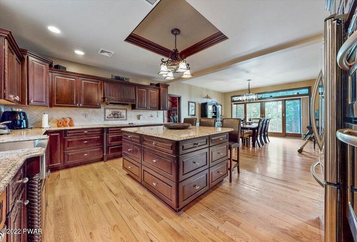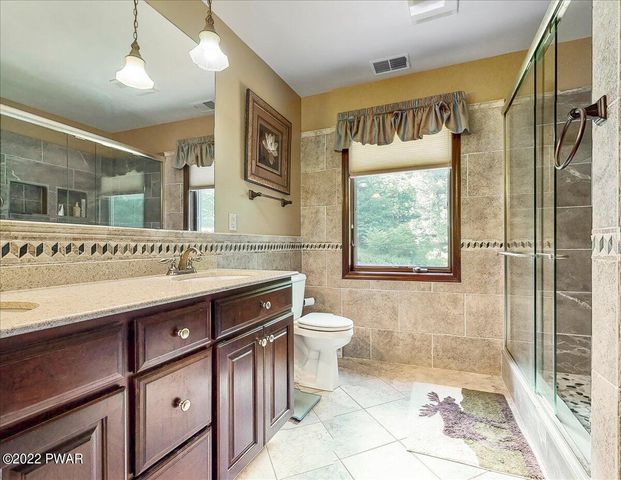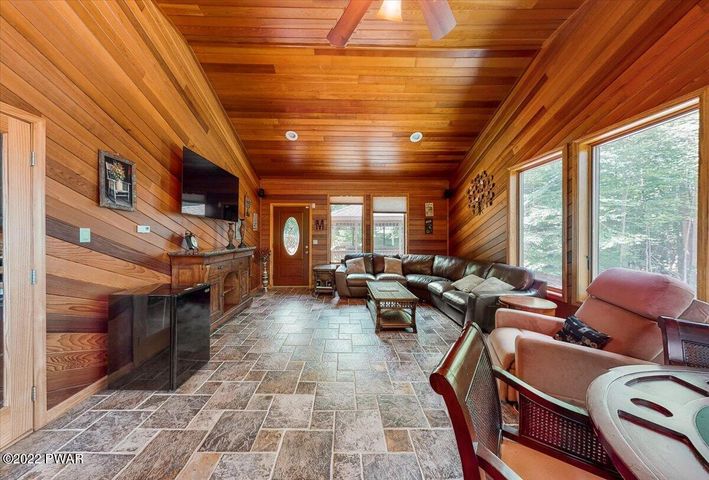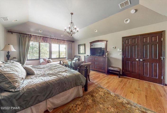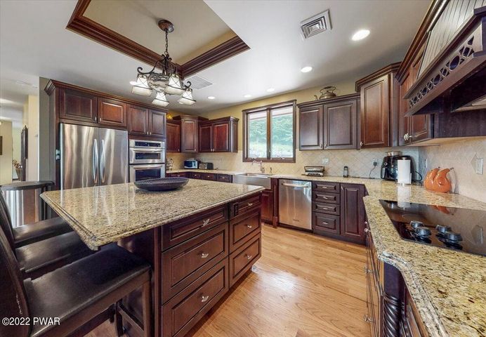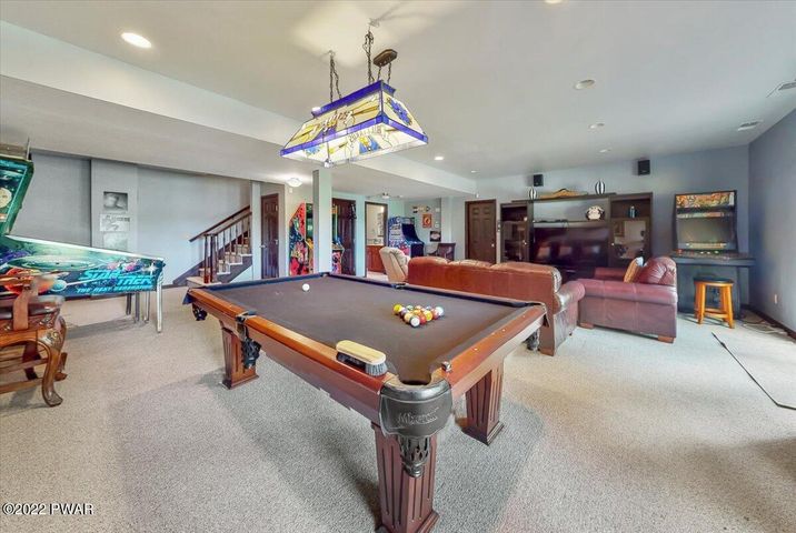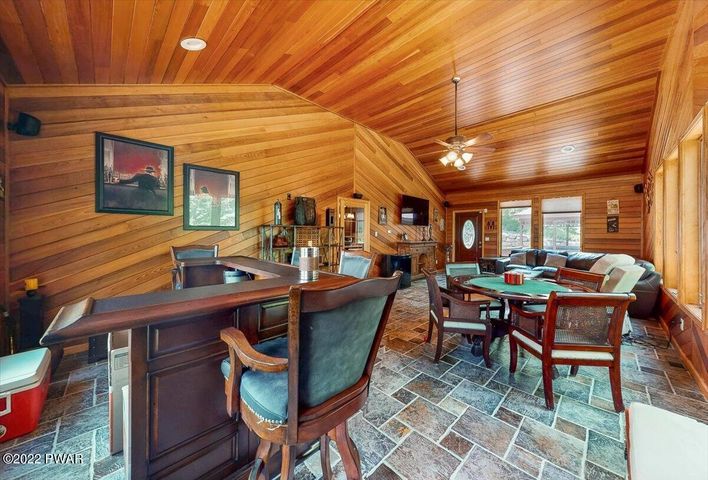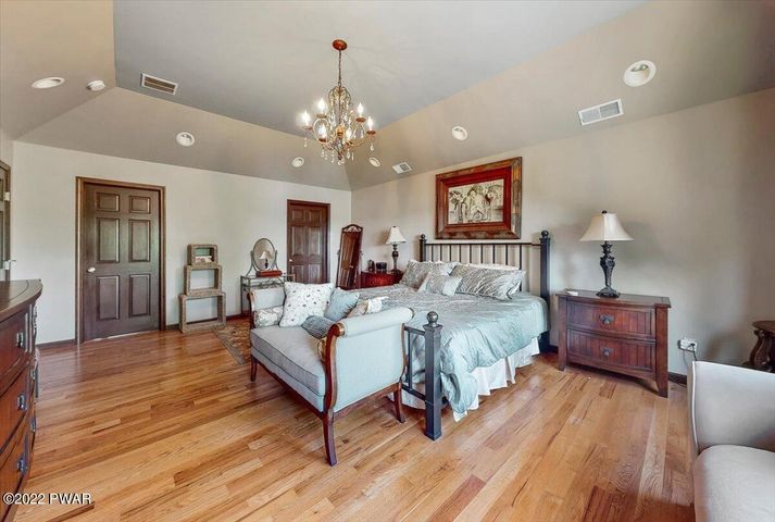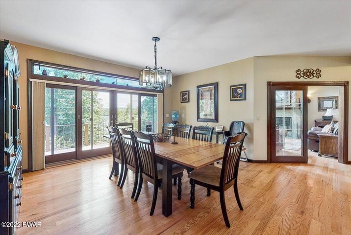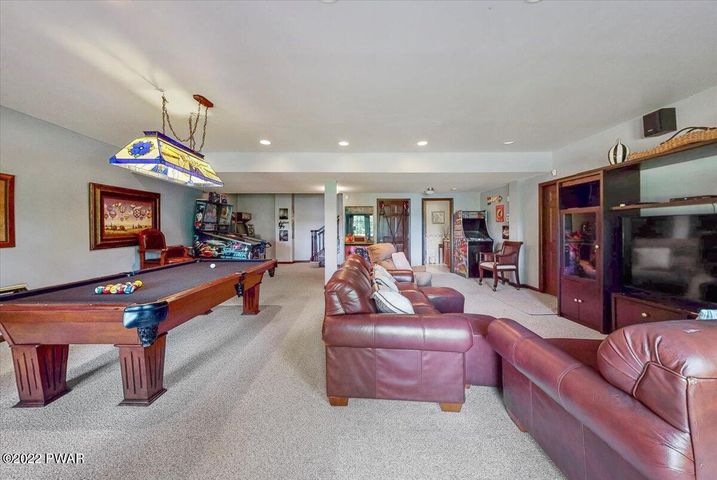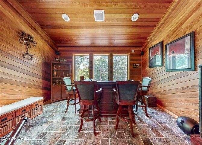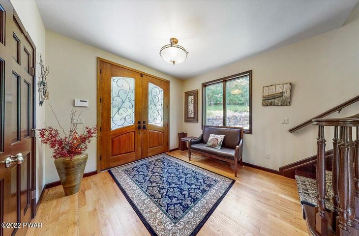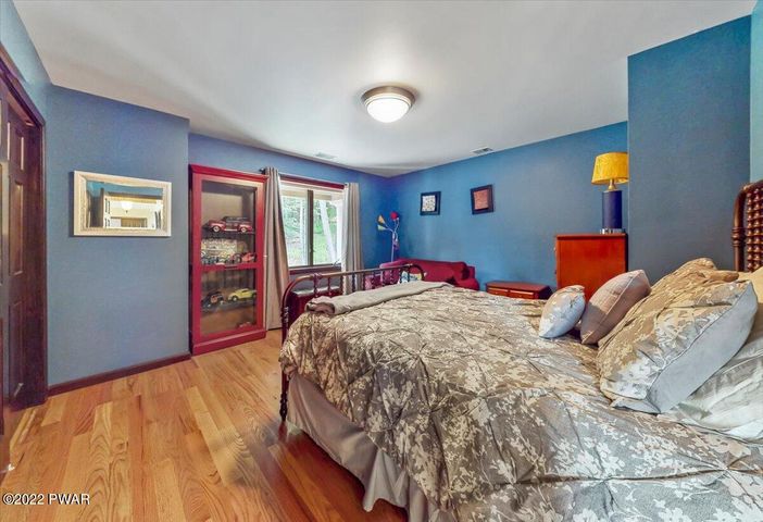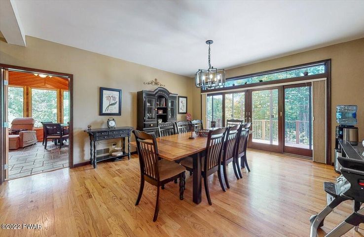 Custom built, Cedar sided LAKEFRONT home with long views of Lake Wallenpaupack from many rooms. Tremendous stone work graces the path down to lake with ponds, waterfalls and resting areas. Home sits on a huge lot with spacious backyard and features a deck with hot tub, multiple garages for your toys and seclusion from other homes. Drive down to lake with your golf cart or side by side, or walk the fantastic stone walkway. Behind the house is access to 350 wooded acres to explore.