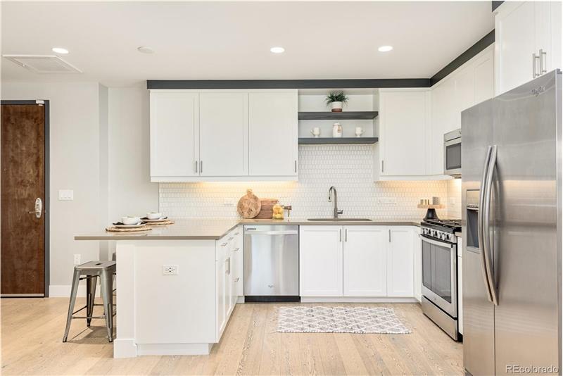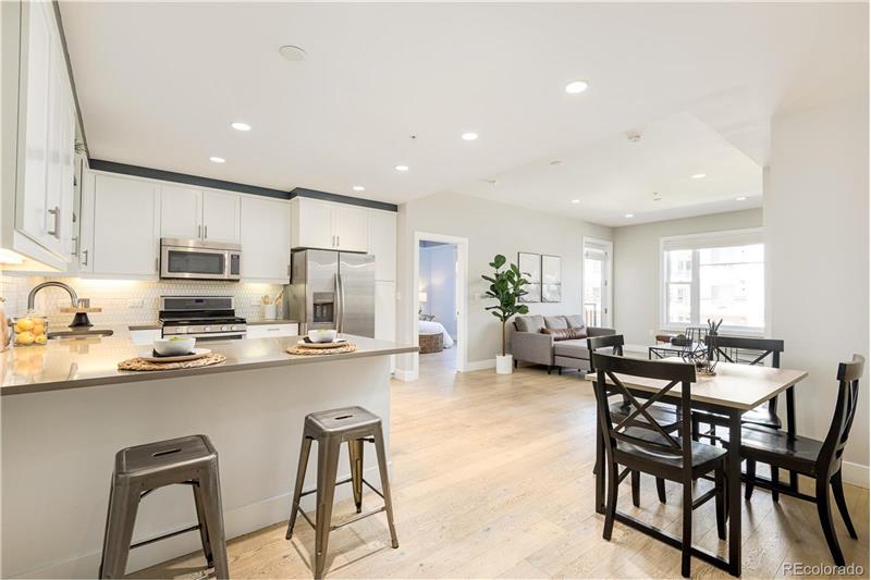 Experience beauty, comfort and luxury at the amenity-rich Peloton community in central Boulder. Step inside this two bedroom and two full bathroom home to discover an open and functional layout illuminated by abundant natural light and high-end finishes. The gorgeous tile, counters and fresh paint harmonize perfectly with the sophisticated flooring, creating a tranquil ambiance and flow. The generously sized kitchen with stainless steel appliances, gas range and a stylish tile backsplash is the perfect spot to entertain.