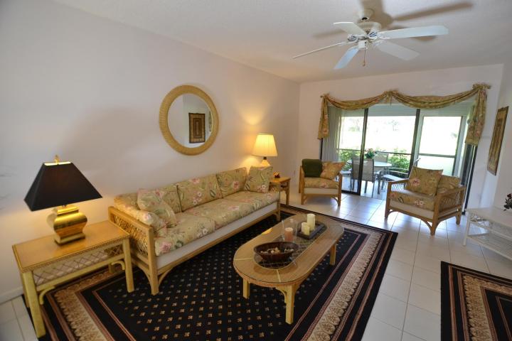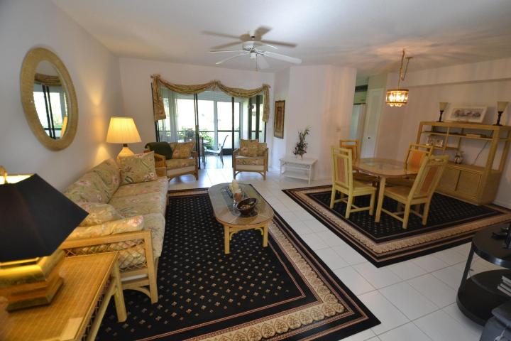 Quail Run 1st Floor Coach Home! High desirable area, beautiful park like community! Perfectly located near fantastic shopping, dining, schools, medical and entertainment. Just minutes to either Boynton's or Delray's Sandy Beaches! Fully Furnished and Turn-Key Ready! Spacious first floor unit overlooks garden and serene lake view. 2 bedroom, 2 baths, ceramic tile, living room dining room, Great Room style living. Covered & screened in patio. Light & cheery kitchen. Full size washer & dryer. 1 car garage. Clubhouse features comfortable gathering rm, kitchen, library, fitness rm and heated pool.