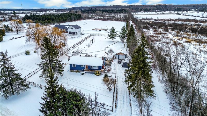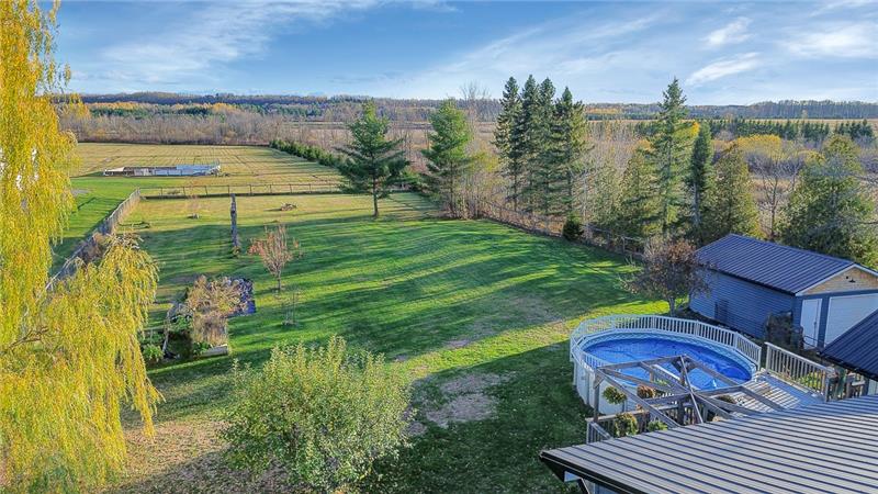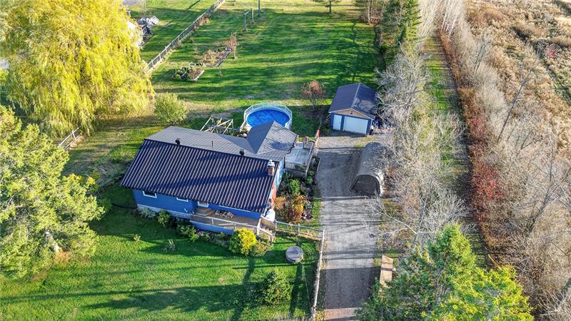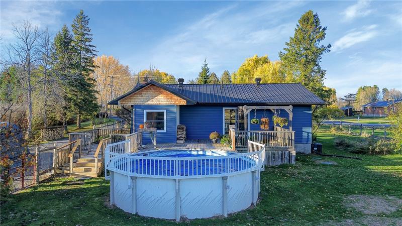 Peaceful country retreat on over an acre! This charming 2+1 bed, 2 bath bungalow features hardwood floors, bright kitchen, cozy fireplace, large deck, saltwater pool, finished lower level, and garage.