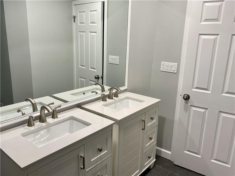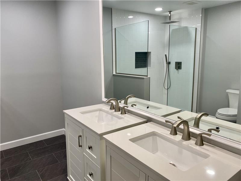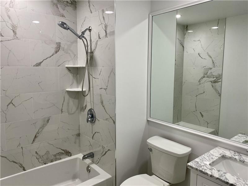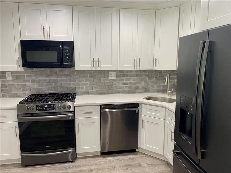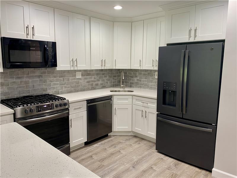 Absolute perfection. Fully-renovated 3 BR townhome, delivering a move-in ready, neutral palette with upscale finishes. New kitchen including cabinets, quartz counter, subway tile backsplash and stainless steel sink. All bathrooms fully renovated with high-quality materials. Open floorplan with new flooring and fixtures throughout, a cozy fireplace, and sliding doors to patio. Primary bedroom features a gorgeous new bathroom with custom glass shower and double-vanity, walk-in closet, and private balcony. Full basement, attached garage. Don't miss it!