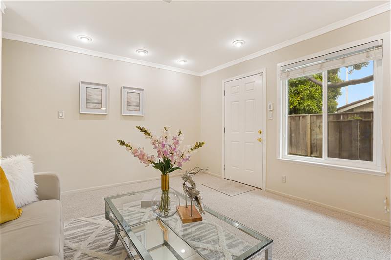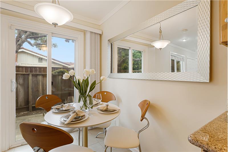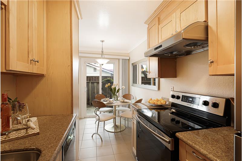 This delightful and efficient townhouse is located back inside the Los Prados complex away from public streets. You will have a short walk to cafes, parks, and shops. Even the Hillsdale Shopping Center is less than 2 miles away. The main floor encompasses the living room, dining room, and kitchen. Just outside of the living room and the dining room is your large fenced patio. When you arrive home, you can enter the kitchen from your attached carport. The kitchen provides modern electric appliances, maple cabinets, and granite counter-tops. Upstairs, the large master suite has a large bal