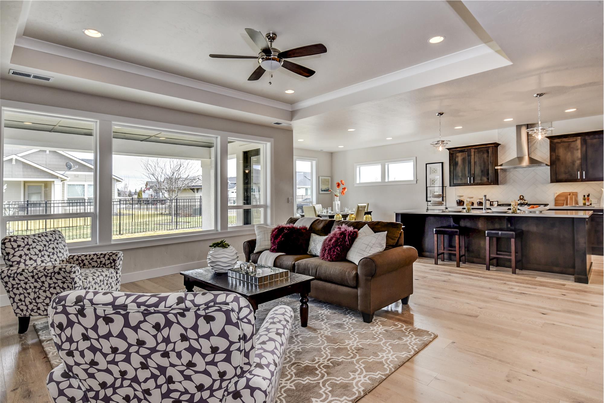 Welcome to the Greenbriar! The living is easy in this graceful design! Designer elements are showcased in the custom kitchen & luxurious master bath. From slabs of gorgeous granite to fine tile, gorgeous cabinetry & miles of gleaming wood floors, Boise Building Company spares no expense in pampering new owners! A 4-piece Whirlpool stainless steel appliance package is included. Stylish lighting, an elegant fireplace, a dramatic ceiling in the family room plus upgraded trim adds luxurious detail! This single level encompassing 3 spacious bedrooms with plenty of room for study, sleep and storage!
