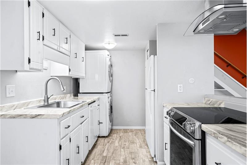 Don’t miss this remodeled townhome northeast of Highway 285 and Kipling Street. Features include new wood plank tile throughout the first floor, new lighting fixtures, new stainless-steel sink and range. The fully tiled bathroom has a new vanity and lighting. The bedrooms have new carpeting, ceiling fans, and the primary bedroom has a walk-in closet. There are newer windows throughout. The LG washer and dryer are included. Also included is one space in the 2-car shared garage, with a storage area included. A second designated parking spot is in the parking lot.