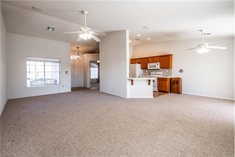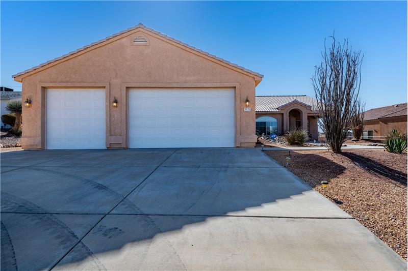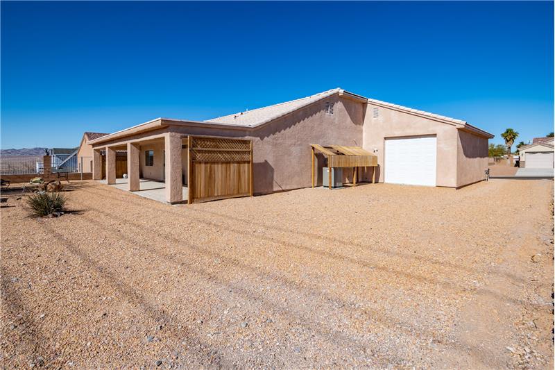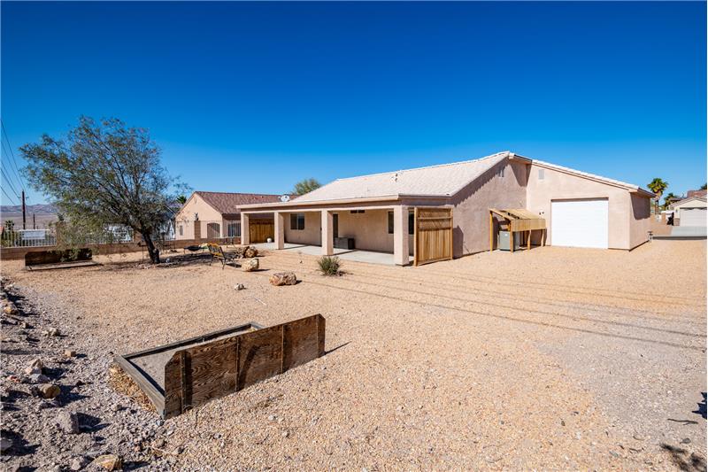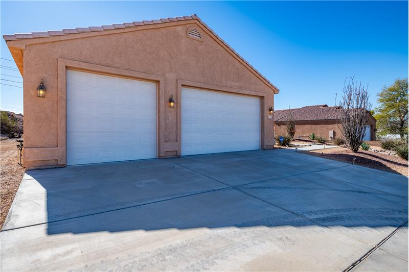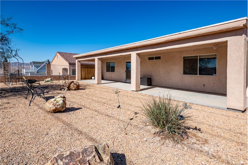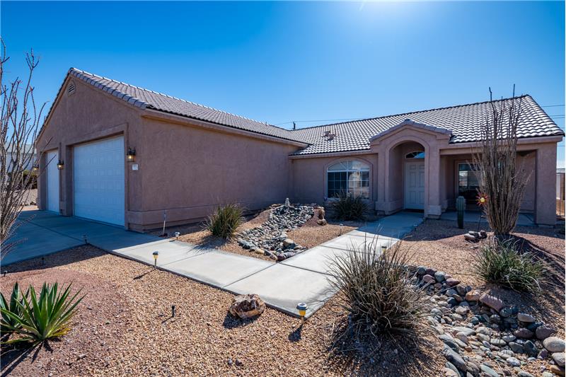 Open and airy! NO HOA! This home is immaculate and a beautiful blank canvas ready for your special touches. Through the entryway to the inviting great room and on to the view to the beautiful back yard. Kitchen has a small breakfast bar and dining room. There is one guest room with double doors (sellers had it furnished with a queen bed and all the things too). Then down the hall is a second guest room and bath and the primary suite and bath with walkin shower. The garage is a delight with parking for at least 3 cars and one of the bays has a drive thru.
