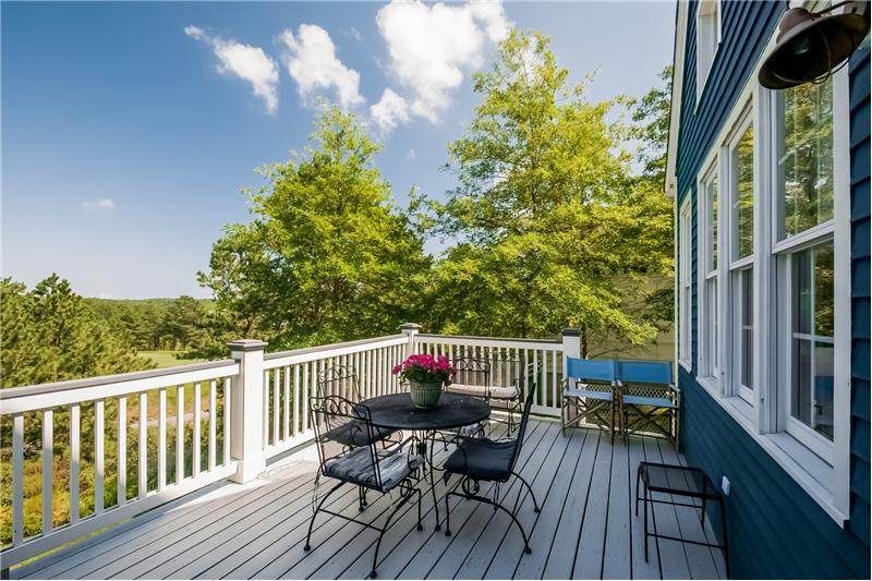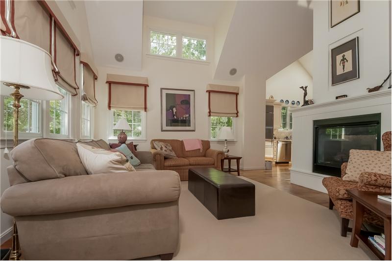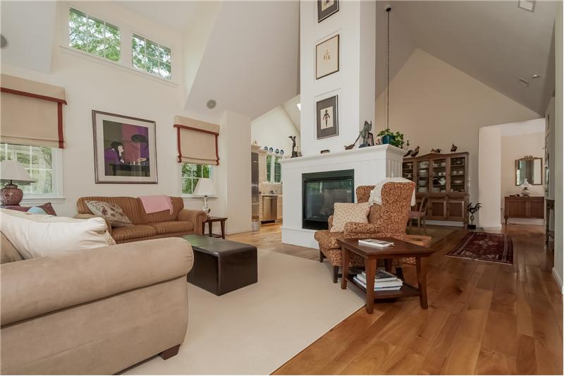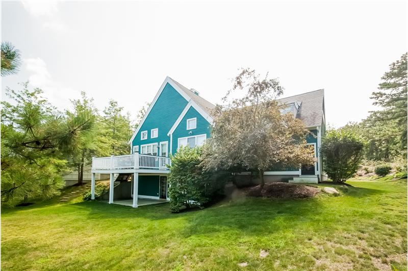 Beautiful private lot at the end of the street, this Dartmouth model features an open floor plan, center gas fireplace~kitchen has corian tops, double ovens and stainless appliances on one side and great room on the other. The first floor has master bedroom w/bath and additional bedroom w/bath~first floor laundry room! Upstairs has additional bedroom, full bath, office/den/separate living area that opens to private balcony overlooking golf course.