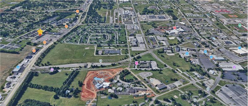 1,320 sf unit includes large customer interface area, admin counters, two private offices (one with restroom), conference / flex space area with break counter, back restroom and storage area. Excellent signage opportunities along Ft Campbell Blvd, large parking area, and easy access from Ft Campbell and State Line Rd. Possible conversion to retail use with Landlord approval. Modified gross Lease terms with Lessor paying real estate taxes, real estate insurance, and CAM. Tenant pays all other costs. Available immediately! Use restrictions apply. Call agent for showing.