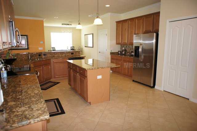 This Tivoli Home was built in 2011 and has remained in pristine condition. Owners added custom backsplash in the very large 18 x 13 foot kitchen, large open family/living room plan adds to the charm! There is a beautiful view of the pond and golf course. Three car garage, dining room, screened covered patio and four bedrooms! Located near the end of the circular road, you get less traffic than all the other homes in the area. Community pool, tennis, playground and maint. free! Fees include golf membership and access to all amenities. Never mow a lawn again! You don't have to worry about commo