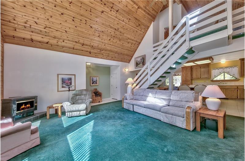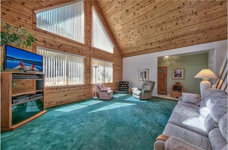 Beautiful setting and condition for this Christmas Valley mountain style Chalet on an over 1/3 acre level parcel backing a huge Forest Service lot and with wonderful open space on both side. Dramatic high vaulted natural wood ceilings and two story stacked windows as you enter the living area of the great room. Nice kitchen with a large island/bar. Covered, enclosed, screened and lighted back deck with skylights & it is plumbed for a hot tub. Three bedrooms with the master bedroom downstairs, two baths and loft.