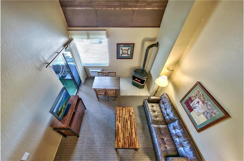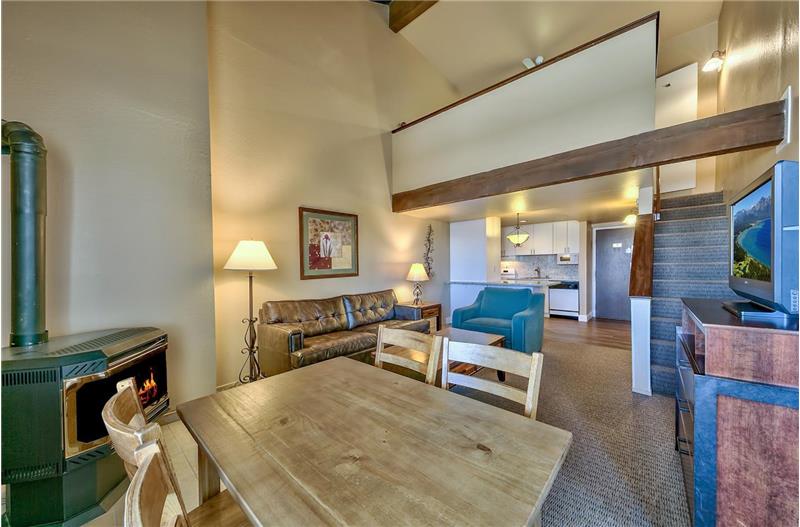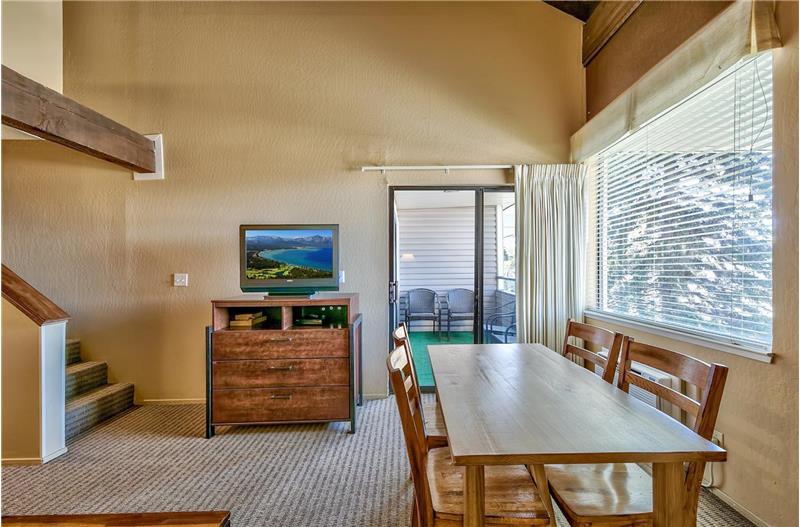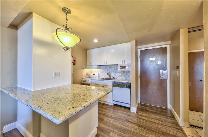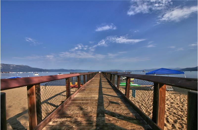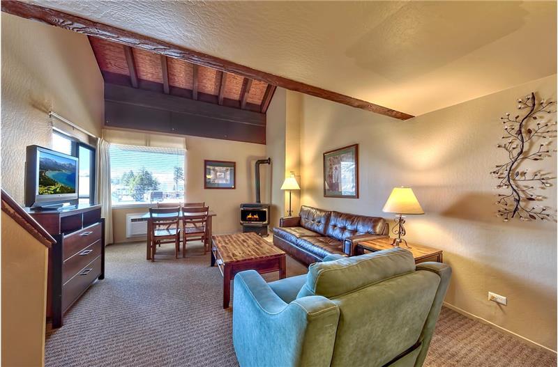 Lakeland Village beach and Mountain Resort is a waterfront community located in the tourist accommodation core. Vacation rental permits are available. This two story condo overlooks the Bijou shopping area with views of Mt Tallac and the lake. It has been upgraded with white shaker cabinetry, granite slab counters and designer vinyl flooring.The bathroom downstairs has a granite counter and a tile tub shower combo. It comes fully furnished. Lakeland Village borders 1000' of sandy beach and has 2 lake-view tennis courts, fitness center, under building parking, 3 pools, 2 hot tubs, and more.