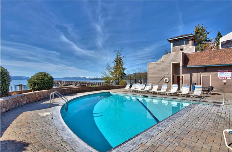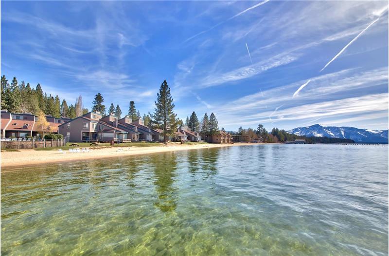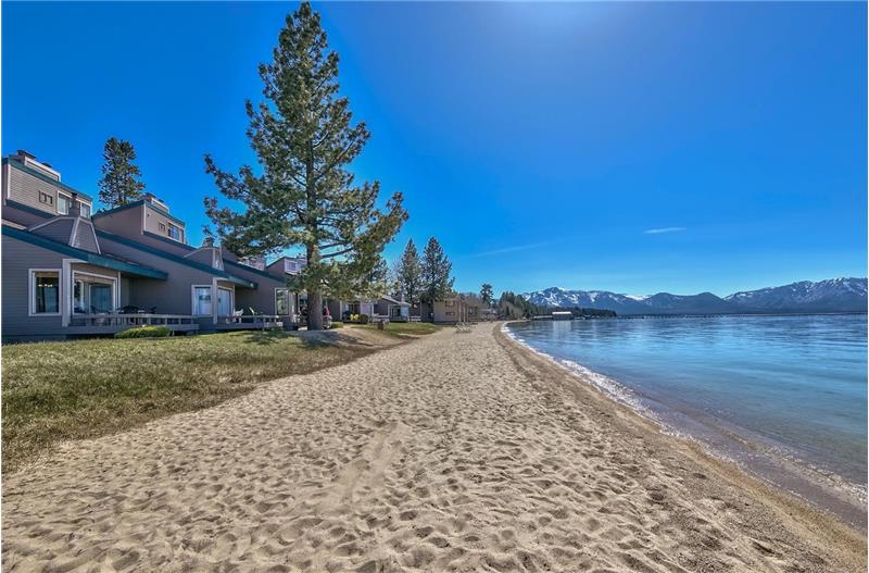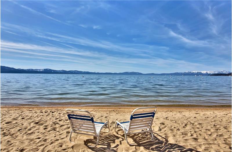 Waterfront community with over 1000' of the best sandy beach in Tahoe as well as a private homeowner pier. This single level condo has a private bedroom with a slider that opens to the covered deck. This home is priced under market to sell fast. It is located on the first floor with elevator access to the sub terrain parking garage. There are 2 tennis courts, 2 saunas, fitness center and more. The HOA fee includes refuse, water and cable TV and is only $345.