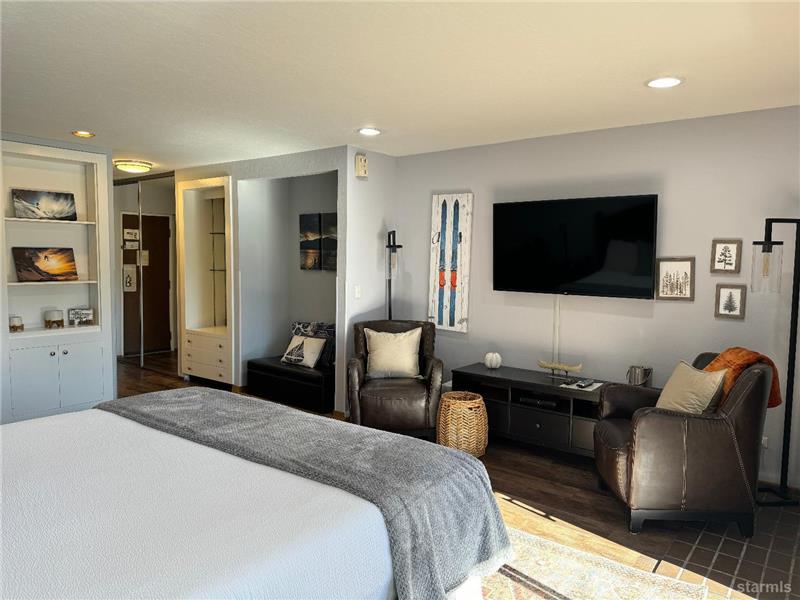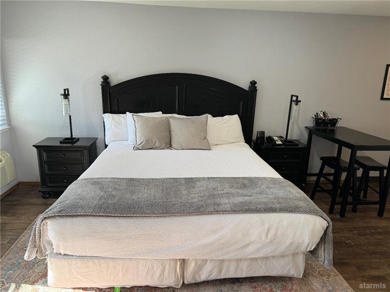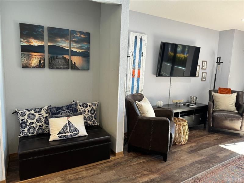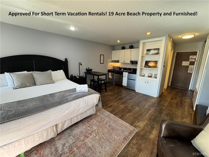 This studio condo is located in the Tourist Core on a 19 wooded acre beach front property. Owners and guests enjoy 1000' of the best sandy beach in Tahoe as well as the HOA private pier, 3 pools, 2 hot tubs, fitness center, saunas, lakeside fire-pits and BBQ's. The owners of this condo have taken meticulous care of it. Enhancements include designer solid surface flooring throughout, painted white cabinetry, granite counters, stainless steel appliances, new paint, new shaker style doors with brushed nickel hardware, new ceiling light fixtures and so much more.