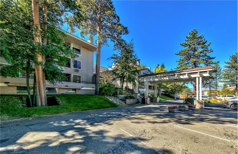 Waterfront 19 acre property with1000 of the best sandy beach in Tahoe, 3 pools, 2 spas, 2 lake view tennis courts, fitness center, saunas, private HOA pier. This 2nd floor studio condo has a seasonal peek lake view from the covered balcony. It has carpet and tile flooring. a free standing gas log fireplace, kitchen and upgraded bath. There is elevator access to the sub terrain parking garage, saunas, fitness center and year round heated pool and spa. Measure T approved. It is in the tourist core so short term vacation rental permits are approved. Pre-Covid rental history for this unit type