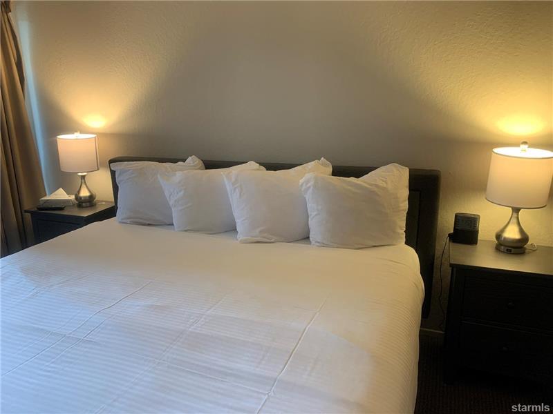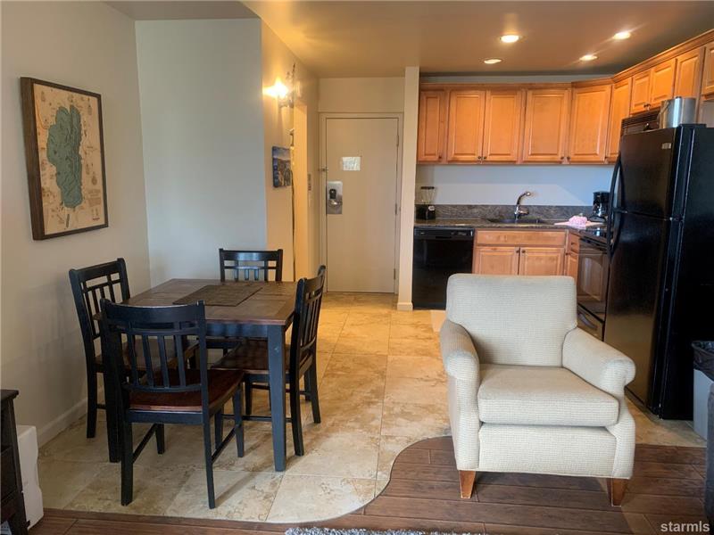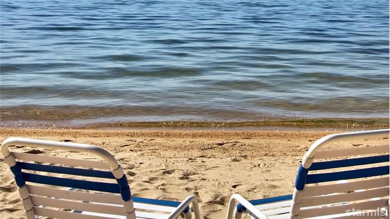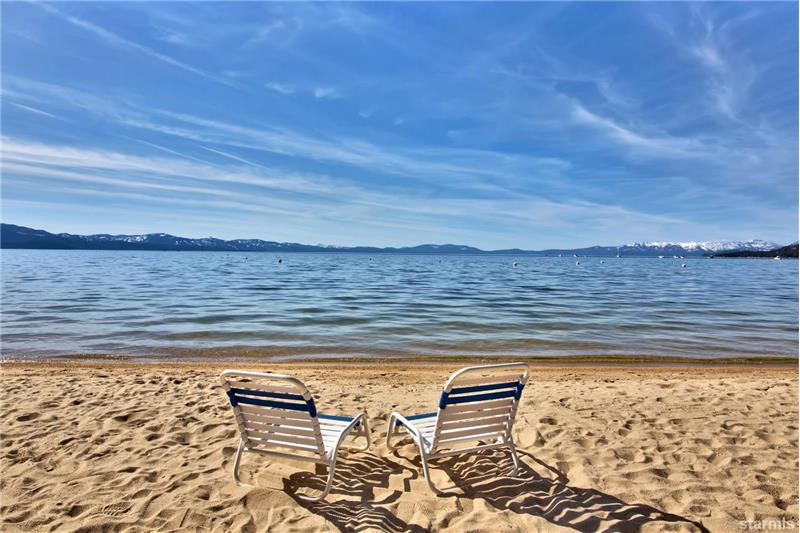 This beautiful air conditioned and remodeled condo is located in the Tourist Core on a 19 acre wooded property that borders 1000' of the best sandy beach in Lake Tahoe! There is an underground parking garage with elevator access to the heated interior hallways. Upgrades include solid surface tile and laminate flooring. A large stone fireplace with gas insert with thermostat control. The kitchen has granite counters, maple cabinetry, stainless full size appliances. The bath includes a double sink vanity and a shower stall with dual shower heads.