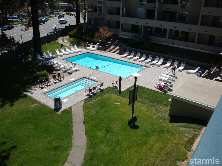 This two story studio loft is on the top floor. New remodel includes a full ushape kitchen with alder cabinets and granite slab counter tops. There are tile floors throughout the entry, kitchen and bath. Bath has upgraded fixtures. Upgraded lighting, extra storage and all furnishings are included. Enjoy the view of Heavenly Ski Resorts Gunbarrel Run from your private deck that overlooks the year round heated pool and hot tub. The lodge building includes elevator access, covered parking, fitness center, his & her sauna's and year round pool access. Located on 19 wooded acre's Lakeland Vill ...