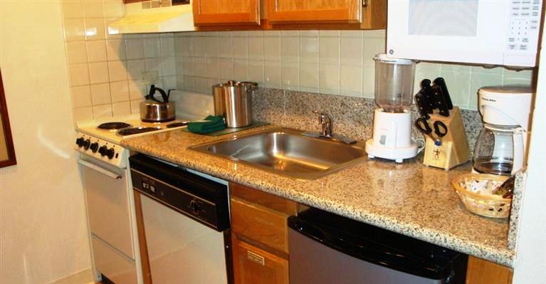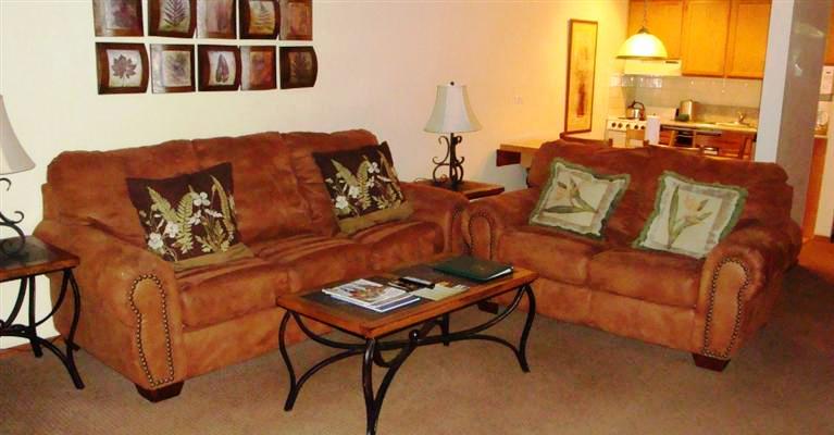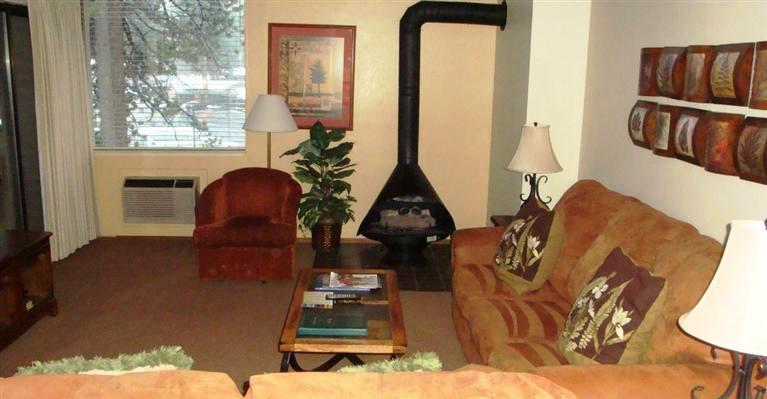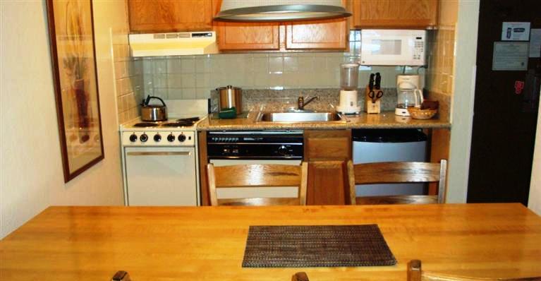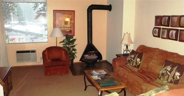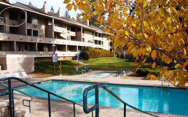 Top floor end unit with a very private covered deck overlooking the year round heated pool and spa. The second bedroom is the loft and it includes its own 1/2 bath. Bedroom one is downstairs with a sliding glass door to the deck. Granite counters and laminate flooring are a few of the upgrades in this fully functional kitchen. The living room has a sliding glass door to the deck as well. This home comes fully furnished and accessorized including all the dishes. The ceilings are vaulted with a skylight. This floor plan is highly requested and desirable. Elevator access to the underbuilding park