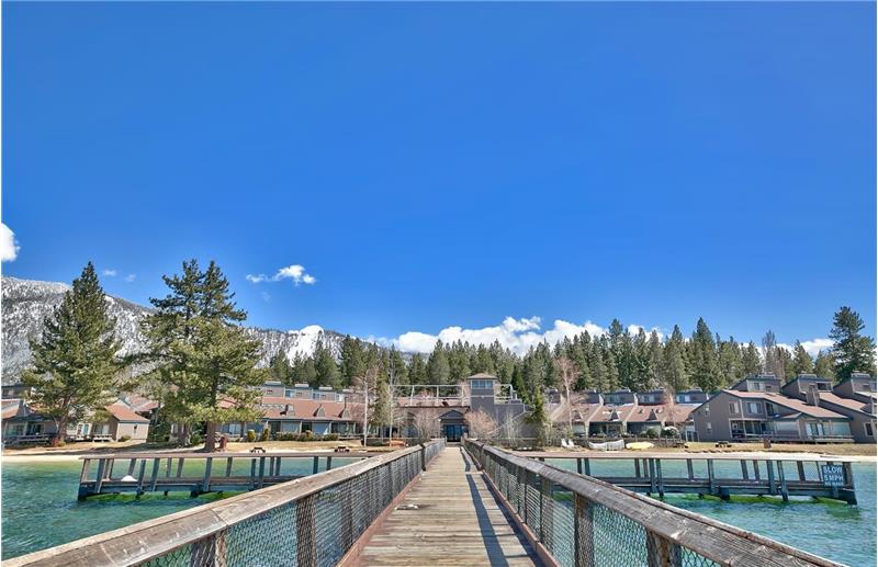 Waterfront town home and condo community with over 1000' of the best sandy beach in Tahoe. Short term vacation rentals are approved at Lakeland Village as it is located in the tourist core. This beautiful home has a large deck entry and a balcony that overlooks a wooded landscaped area. It has 2 full bedrooms downstairs along with a bath and laundry. Level two has the living, dining, kitchen and another bath. The loft sleeps 3. There are open beam vaulted ceilings, plenty of windows to let in the natural light. The kitchen has granite counters, breakfast bar and a large pantry.