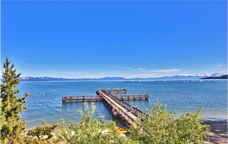 Lakeland Village is located in the Tourist Core where short term vacation rentals are permitted! This townhouse is located on 19 wooded acres with over 1000 of the best sandy beach in Tahoe. The covered deck overlooks the wooded and landscaped green belt and just is a short 60 second stroll to the water. There are two bedrooms downstairs with a full bath and laundry. Upstairs has a the kitchen, living room with beautiful stone fireplace, vaulted open beam ceilings and a slider that opens to the covered deck. The 3rd floor is the loft/bedroom 3.