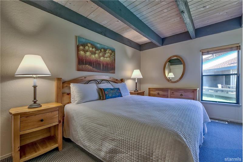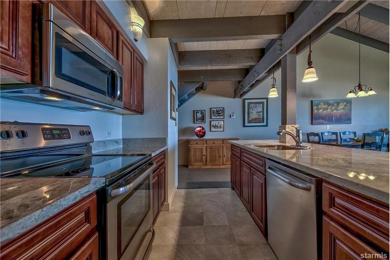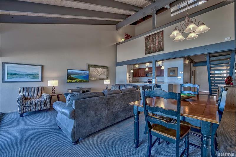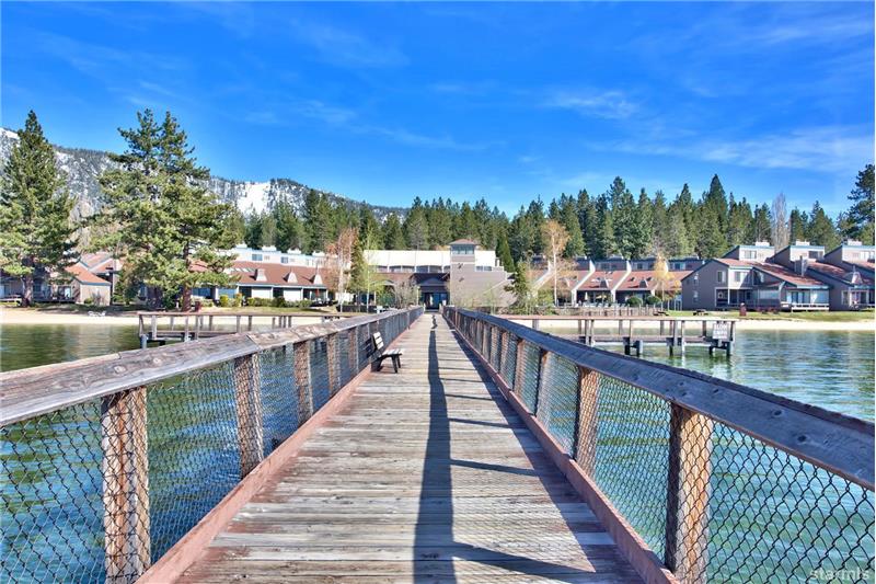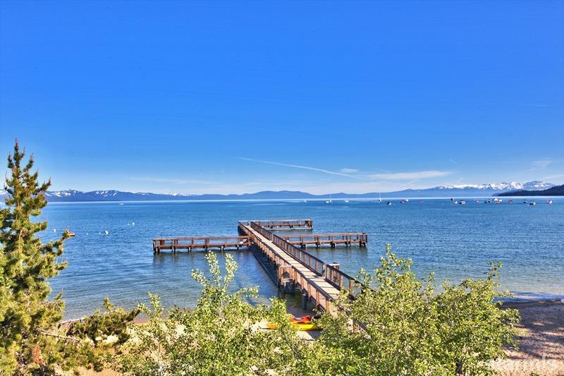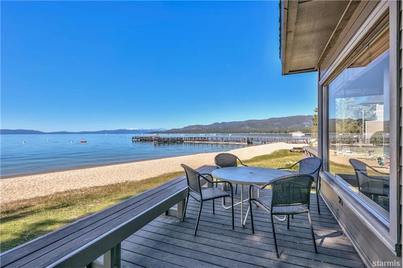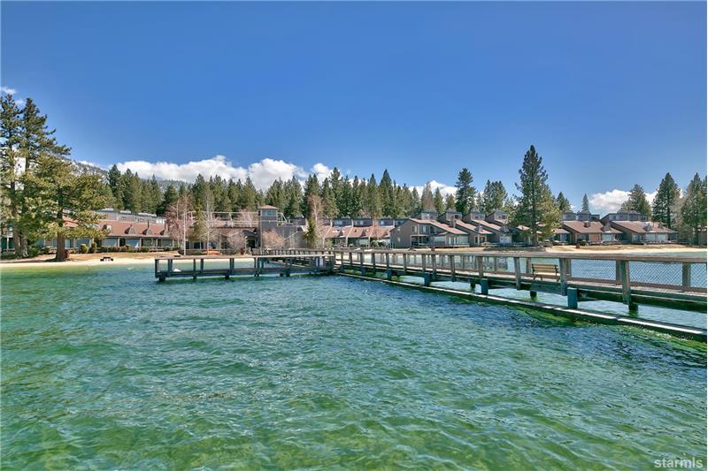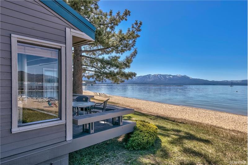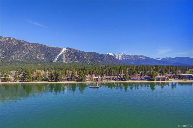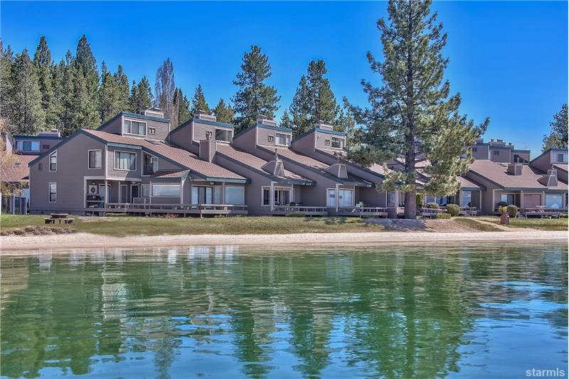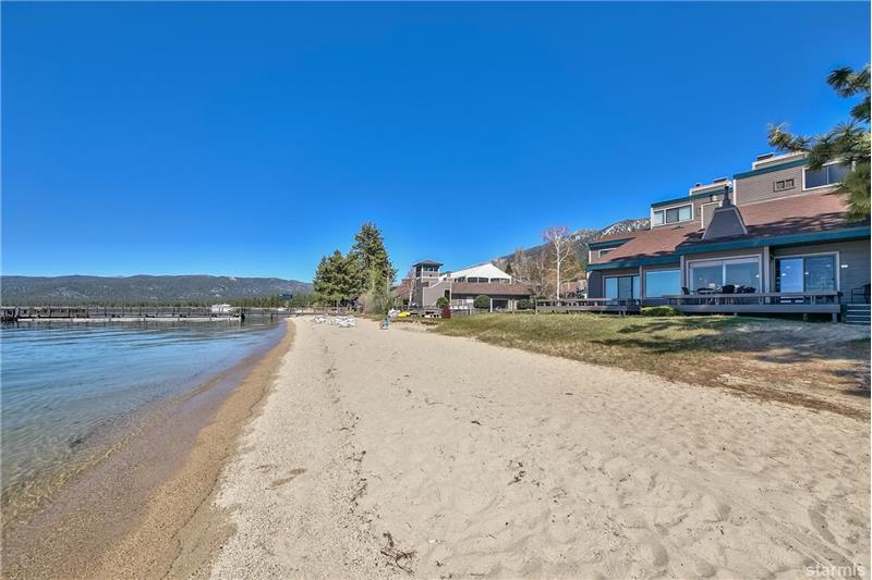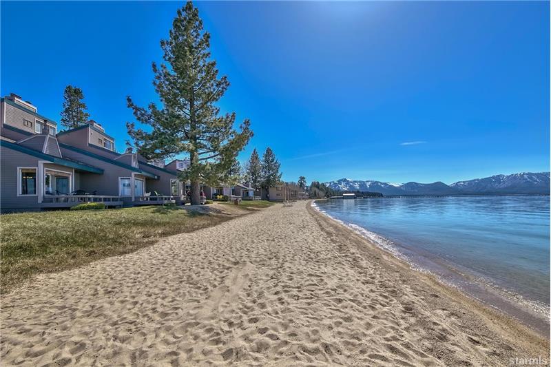 As close to the lake as you can get and on the best sandy beach in Tahoe! This Lakeland Village townhouse is located just 25' from the crystal clear water. Vacation rental permits are available and in 2017 it grossed $96,000 in rental revenue. This home has 2 lofts as the 4th & 5th bedrooms. It is upgraded with custom cabinetry, granite slab counters, stainless steel appliances and it comes fully furnished. There are lake views from the living room, dining room, kitchen and lofts. The deck overlooks the lake with unobstructed sunrise and sunset views! There is ample storage for all your toys.
