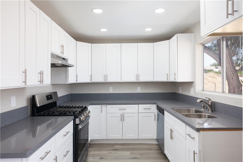 Freshly updated 3-bed, 2-bath home with 2,076 sq ft of living space on nearly 3 acres. Located on a quiet private street, the home features a vaulted-ceiling living room with a dramatic brick fireplace and panoramic canyon and city views. The kitchen has white shaker cabinets, quartz counters, and stainless appliances. Functional layout with two living rooms, formal dining, and a primary suite with ensuite bath and hillside views. Includes two parcels. A rare and scenic hillside retreat.