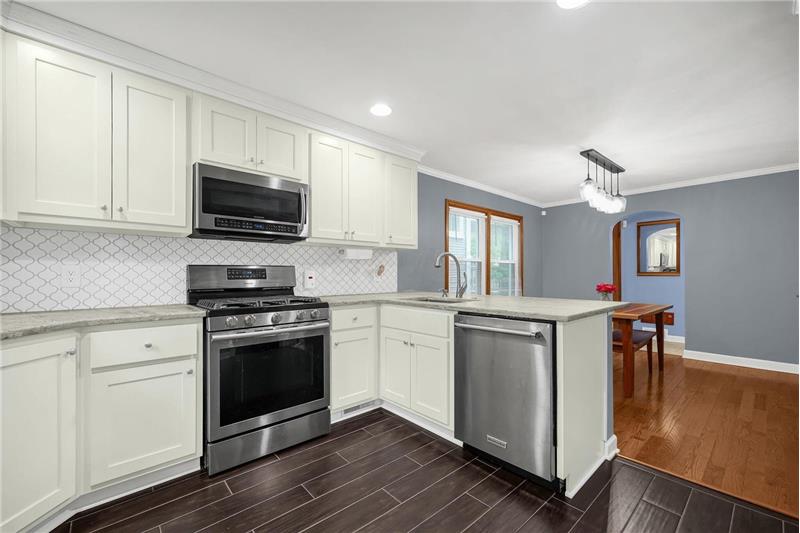 Welcome home to this conveniently located #Westgate beauty with abundance of custom upgrades and nestled on a spacious yard with patio. Gleaming #hardwood floors and upgraded lighting throughout. Remodeled dine in kitchen with custom built, soft close, #AmishShaker style solid wood cabinets, upgraded unpolished granite counters, ceramic tile backsplash, upgraded #Kitchenaid french door fridge, 5 burner gas range, and more. Family size dining area. Spacious great room with wood burning fireplace with beautiful original wood mantle. Fully remodeled 2 full baths with marble floors.