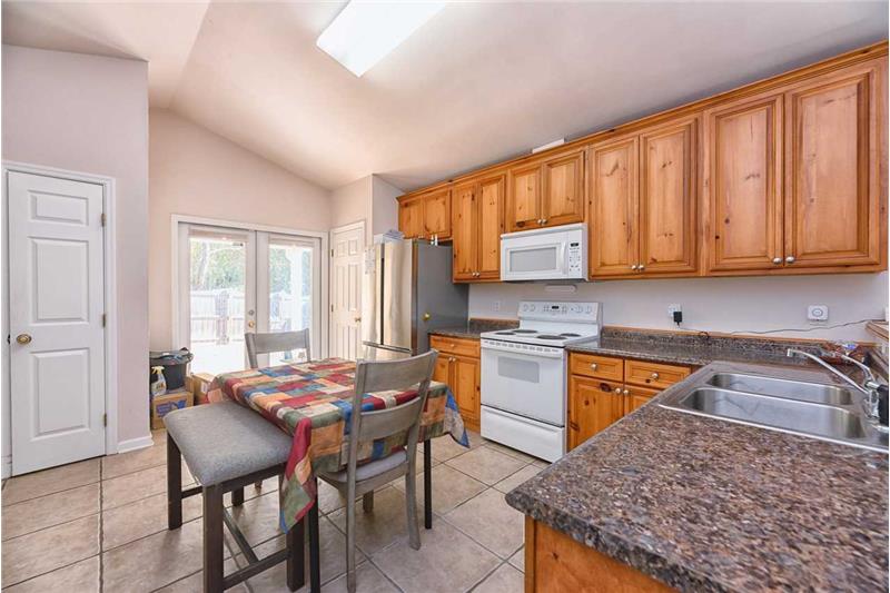 Perfect four bedroom, two bathroom home in popular Dry Creek Run ! There is plenty of space in this light and bright floorplan featuring soaring ceilings in the oversized living room, kitchen with bar seating and an eat-in and stainless steel kitchen appliances, spacious master bedroom with a luxurious bath suite (soaking tub & shower) and walk in closet, and a covered patio out back overlooking the fully-fenced yard, this great home is ready for its next owner!