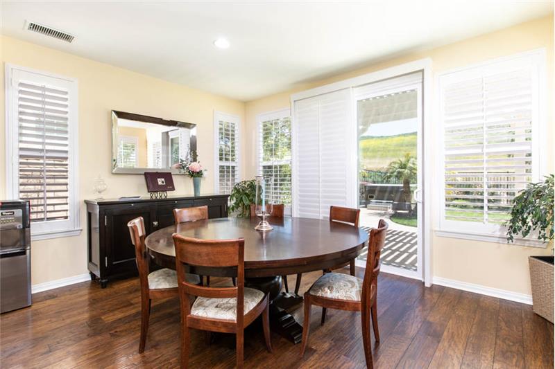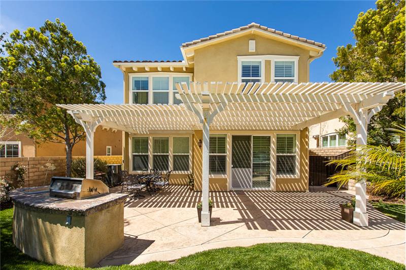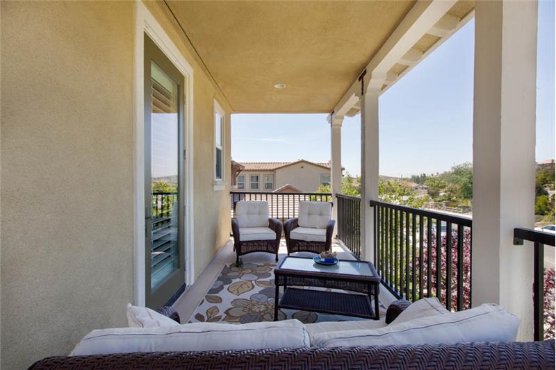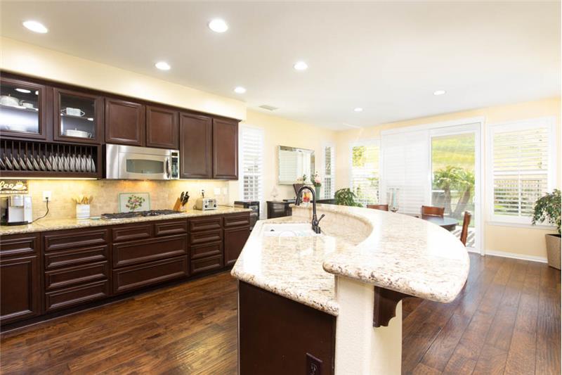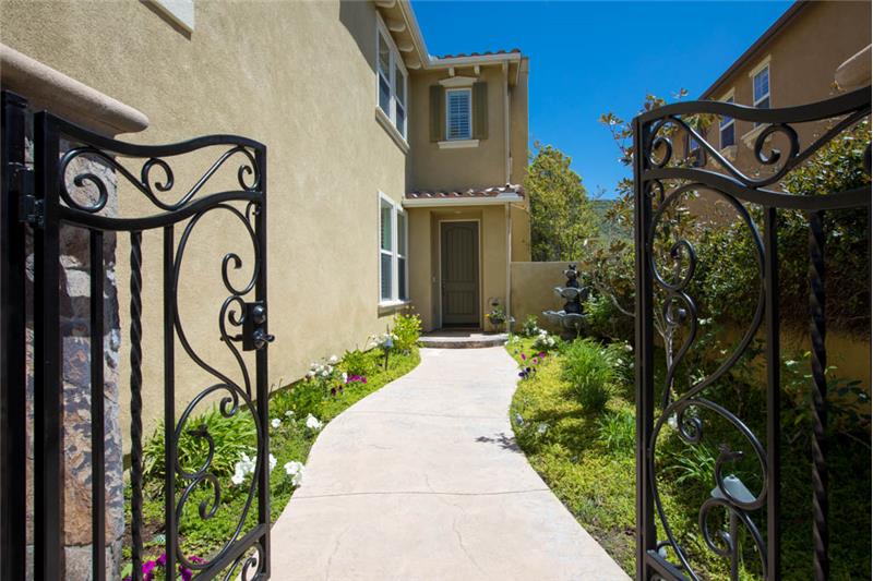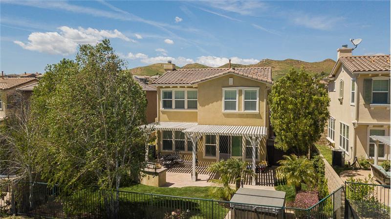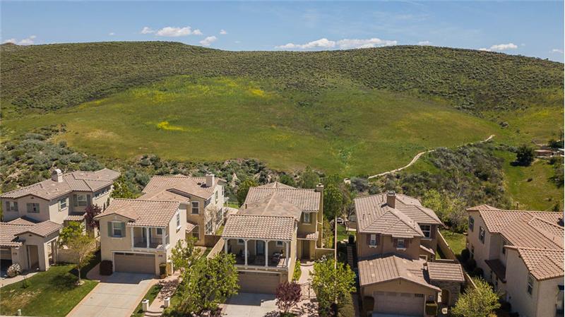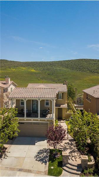 Big Sky beautiful home backing to open space w/views and hosting a great-room-style floorplan w/4 bedrooms, 3 baths (one bed/bath down), 2401 sq. ft. of living space and featuring a beautiful courtyard entrance w/a fountain, wood flooring on the lower level, plantation shutters and dark wood cabinetry throughout, a granite island kitchen w/a breakfast bar, a decorative tumbled travertine backsplash, stainless GE Profile appliances incl. a double oven, a 5-burner gas range, a microwave and a dishwasher. The kitchen is open to the dining area w/a slider to an entertainer’s backyard & more!