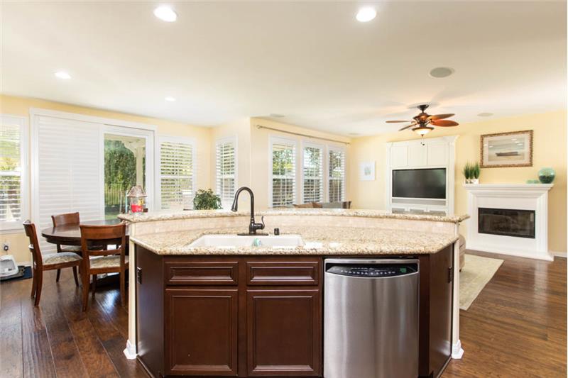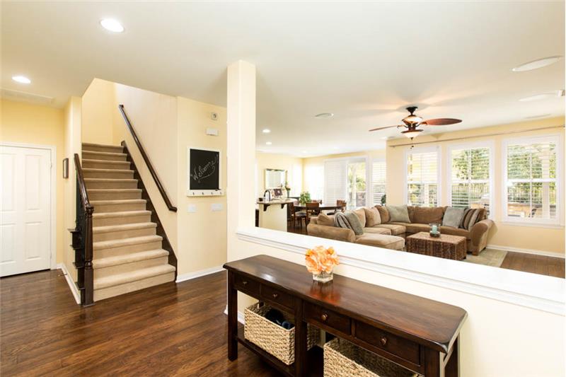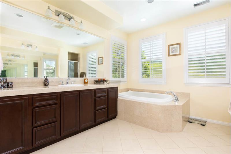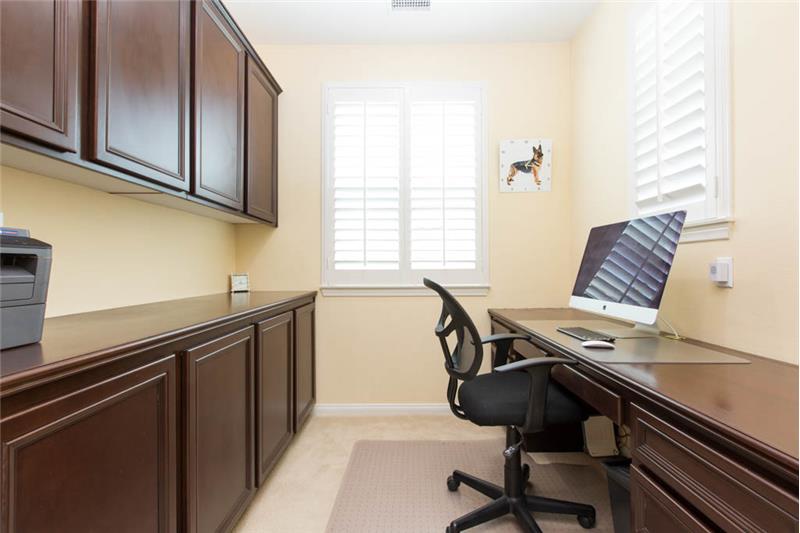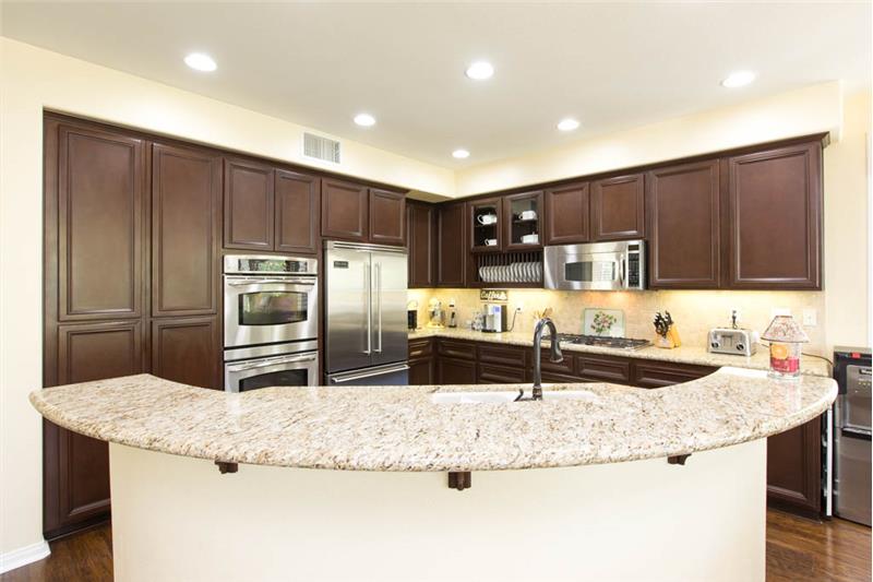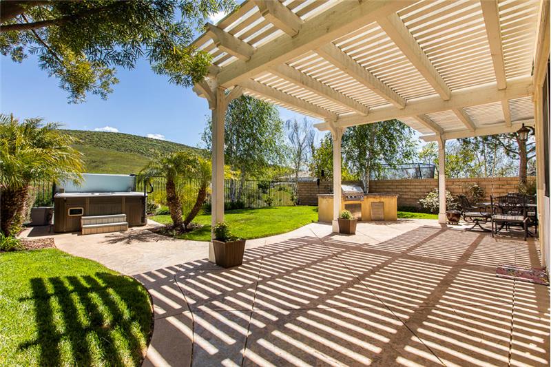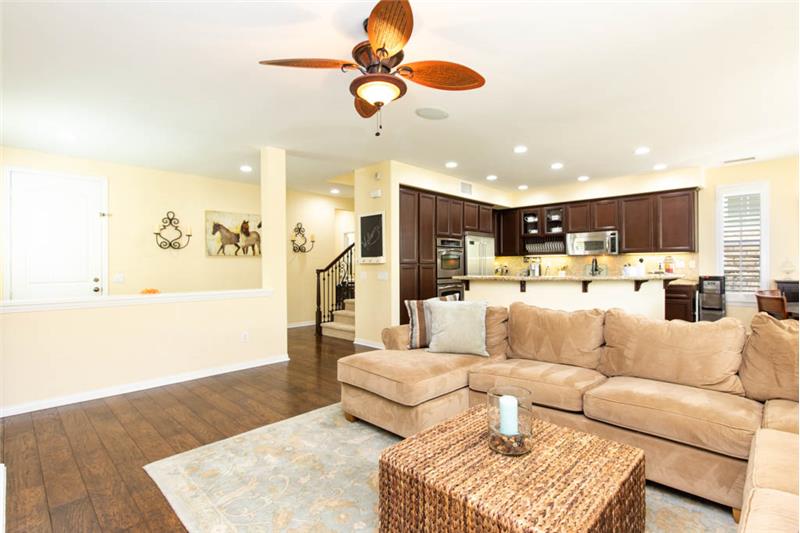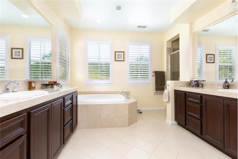 Big Sky beautiful home backing to open space w/views and hosting a great-room-style floorplan w/4 bedrooms, 3 baths (one bed/bath down), 2401 sq. ft. of living space and featuring a beautiful courtyard entrance w/a fountain, wood flooring on the lower level, plantation shutters and dark wood cabinetry throughout, a granite island kitchen w/a breakfast bar, a decorative tumbled travertine backsplash, stainless GE Profile appliances incl. a double oven, a 5-burner gas range, a microwave and a dishwasher. The kitchen is open to the dining area w/a slider to an entertainer’s backyard & more!
