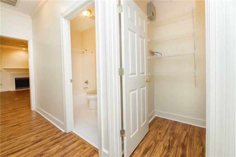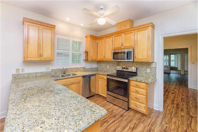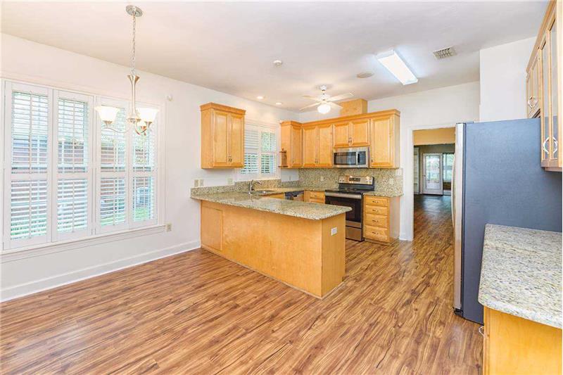 MOVE-IN READY in highly desired Hunters Crossing! Adorable and well maintained, this 3 bedroom, 2 bathroom home features an open floorplan, plantation shutters throughout, over-sized master suite with three closets, indoor utility room, a covered patio overlooking the backyard with updated landscaping, and whole house generator! The perfectly manicured front lawn greets you to a home with the keyword of NEW with newer paint, new appliances, and new flooring in the living areas. Granite counters in kitchen complete with bar area that opens to dining area. Spacious bedrooms and also featuring ad