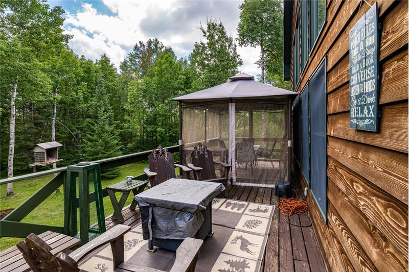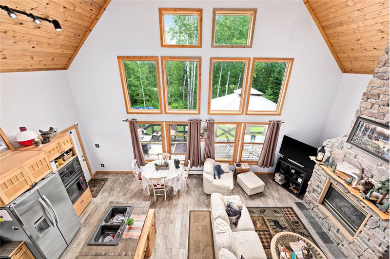 Discover 14.7 acres of wooded privacy between Bassett and Cadotte Lakes—an outdoor lover’s dream! This 4BR/3BA home offers space, comfort, and adventure, w/public lake access just 1,000 ft away on Bassett Bay Beach Rd. Enjoy lake life—boating, fishing for bass, walleye, crappie, and perch—without the lakefront taxes. The home features an upgraded kitchen with tile floors & custom maple cabinets, plus a stunning floor-to-ceiling rock frplc anchoring the main living space. The lofted primary suite includes a private bath & overlooks the great room and large windows with views of nature and...