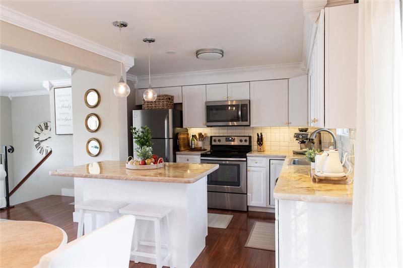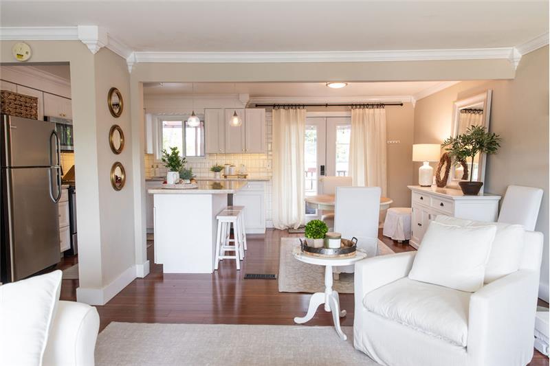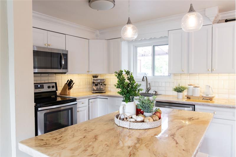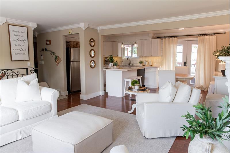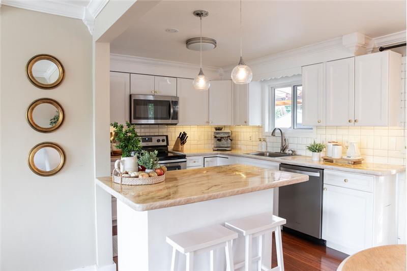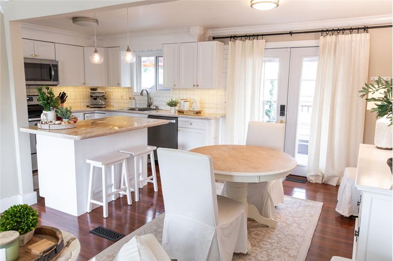 Experience unparalleled versatility in this updated 4-bedroom, 2-bath home, featuring two fully equipped kitchens and separate entrances—perfect for multigenerational living, guest suites, or rental income potential. Bright interiors showcase fresh finishes and modern fixtures. The main level’s open living area flows into an updated kitchen with stone countertops, and downstairs offers a second kitchen and cozy living room. Step outside to your own private garden, stone patio, and covered deck, plus an oversized 3+ carshop—ideal for work or play.