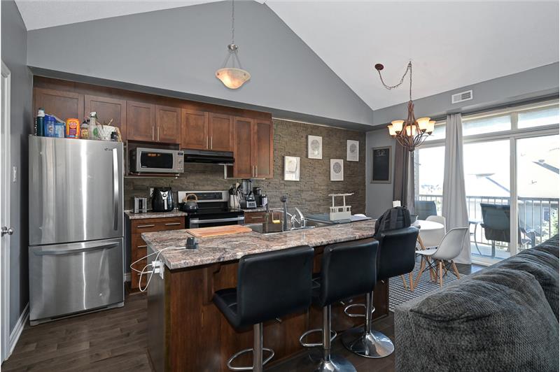 Riverside South 2-bed, 2-bath penthouse with open layout, cathedral ceilings, floor-to-ceiling windows, hardwood floors, walk-in closet, ensuite & oversized balcony. Steps to LRT & amenities.