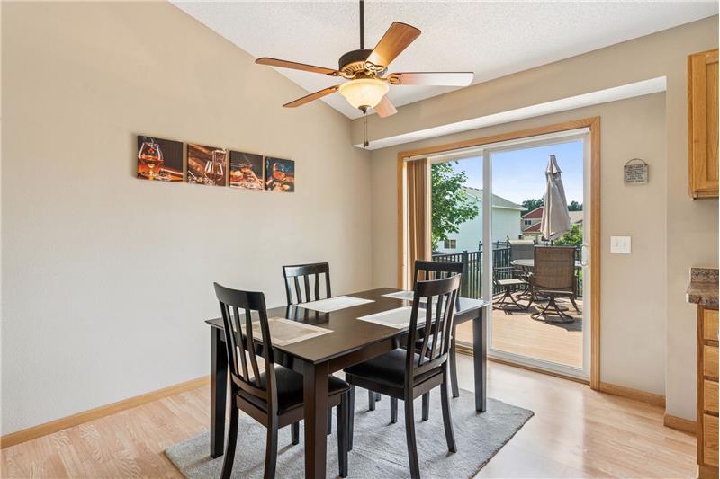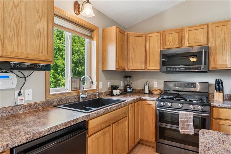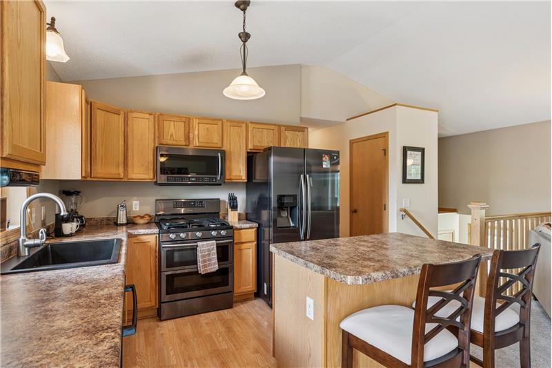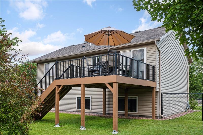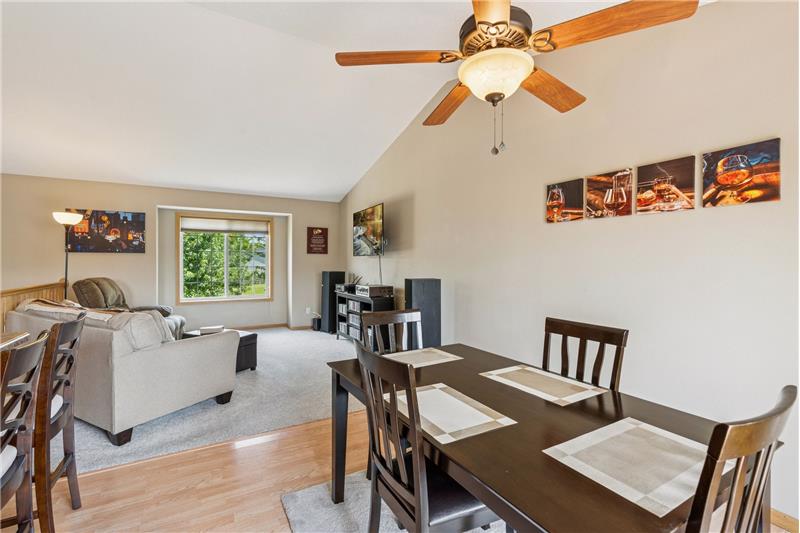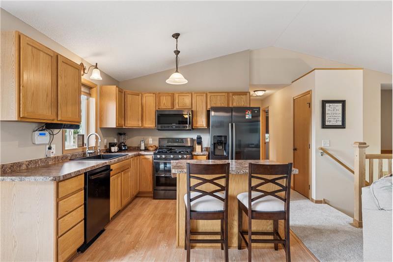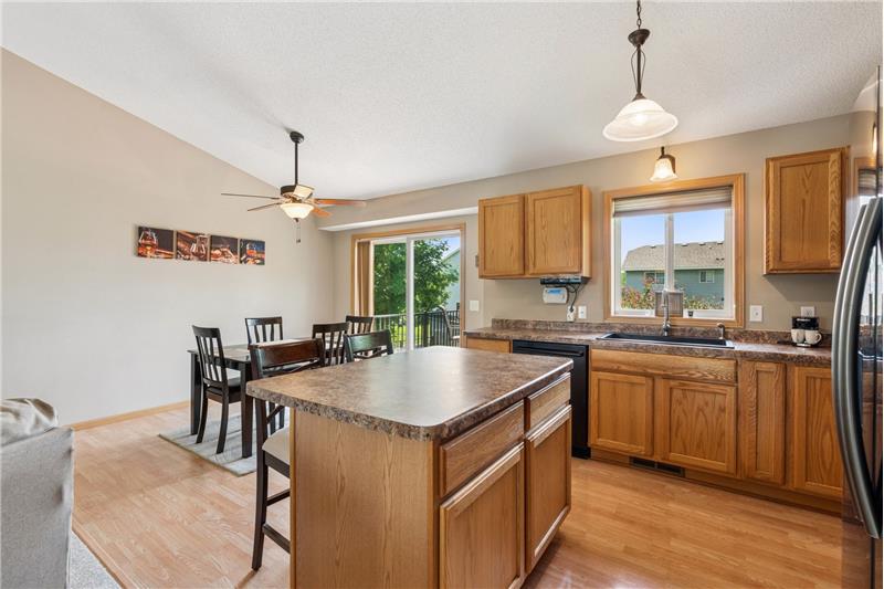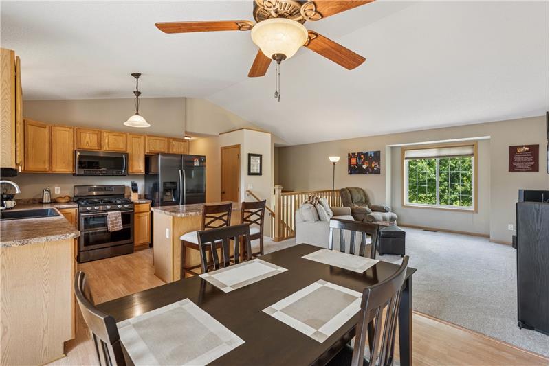 This inviting 3 bedroom, 2 bath home offers a bright and open layout with a vaulted ceiling, spacious living room, and a kitchen featuring ample cabinet space and stainless steel appliances. Enjoy the sun-filled dining area with walkout access to a large deck—perfect for entertaining or relaxing while overlooking your private backyard. The primary bedroom features dual closets. The lower level offers a spacious family room, an additional bedroom, and a second bath. Outside, you’ll find a 3-car attached garage and plenty of space to add a garden, or play area. Move-in ready and waiting for you!