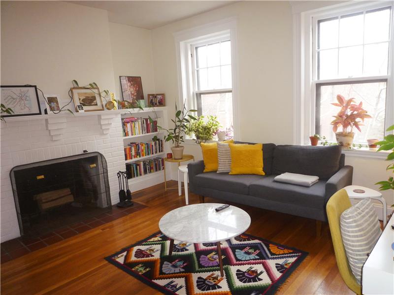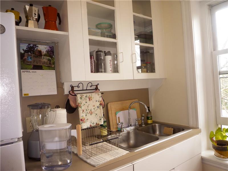 Avl JULY 1. Walk to Harvard, Porter, Lesley University! Cat OK. Sunny quiet top floor 1br condo with working wood-burning fireplace, lovely view of interior courtyard and garden. Heat/hot water included. On Linnaean Street at Avon Hill Street, in a well-kept 1920's building. Charming fourth floor unit, ~650sf, renovated in 2021, with high ceilings, refinished hardwoods, large foyer entrance. Period detail with lots of built-in shelving and original glass-fronted cabinetry. Eat-in kitchen with gas range and refrigerator. Multiple closets. Laundry and storage in the basement. Tenant pays gas (co