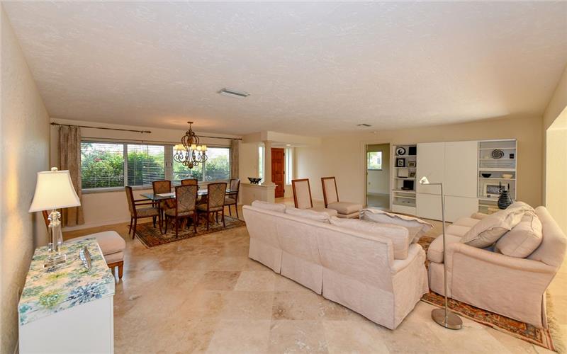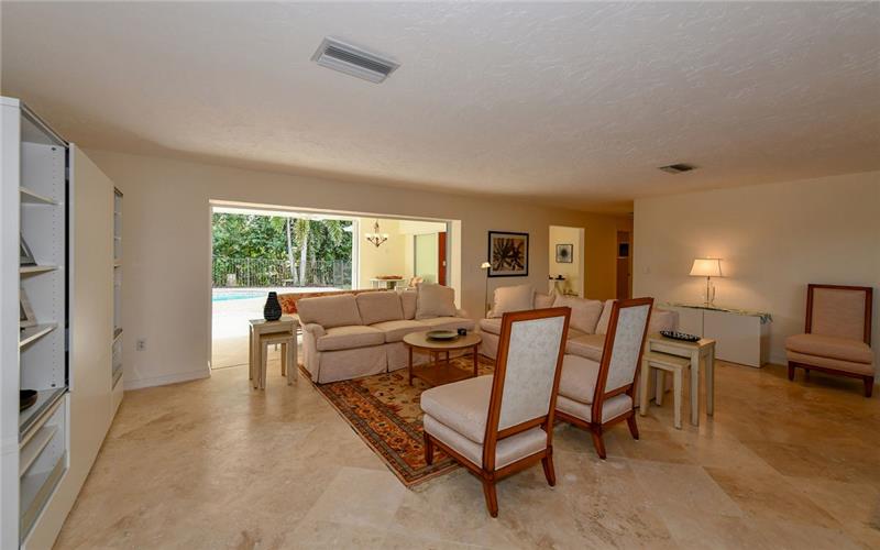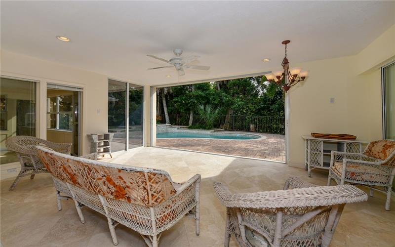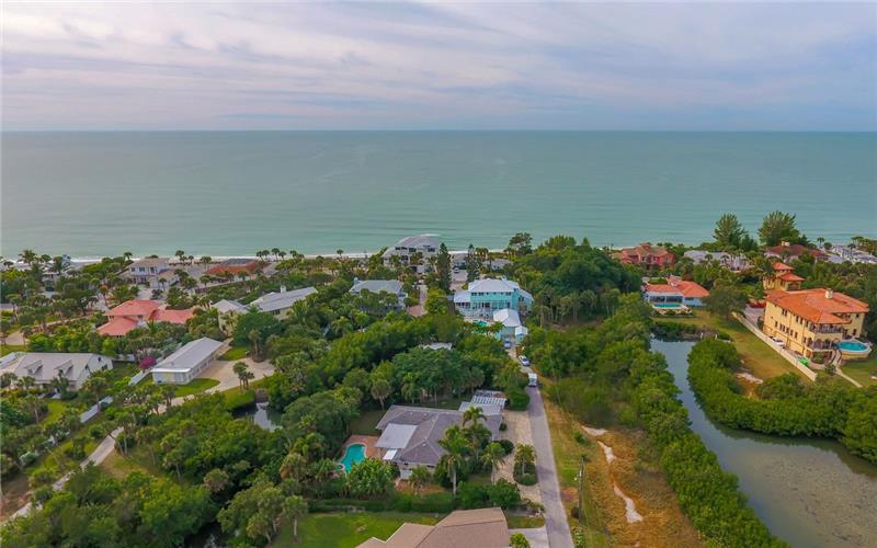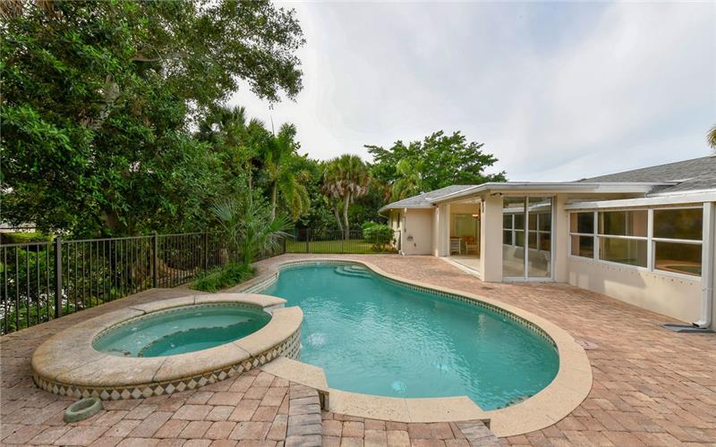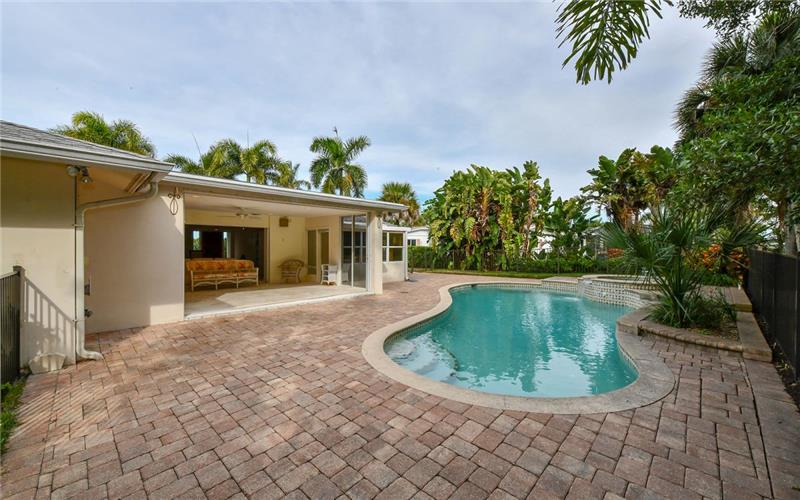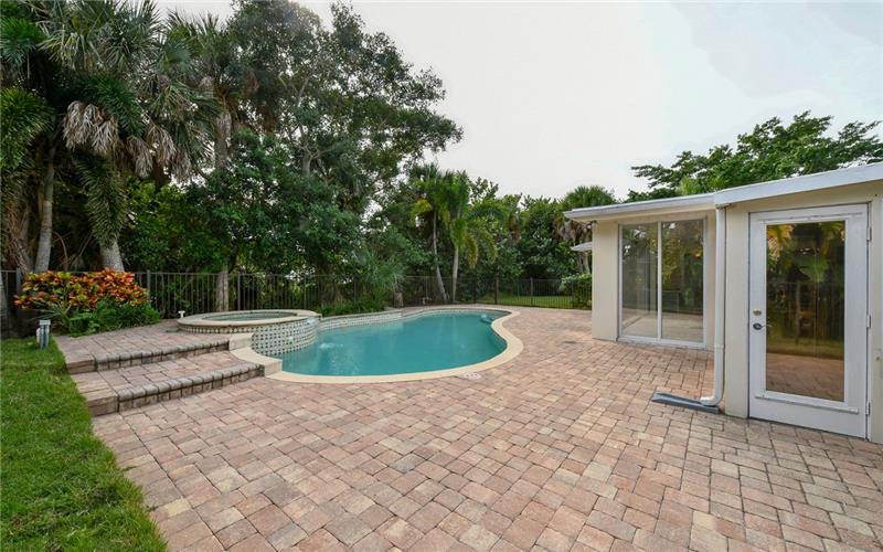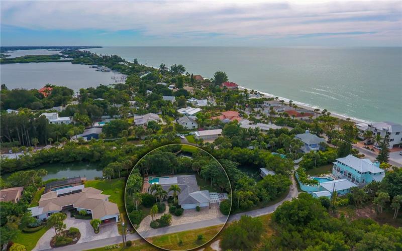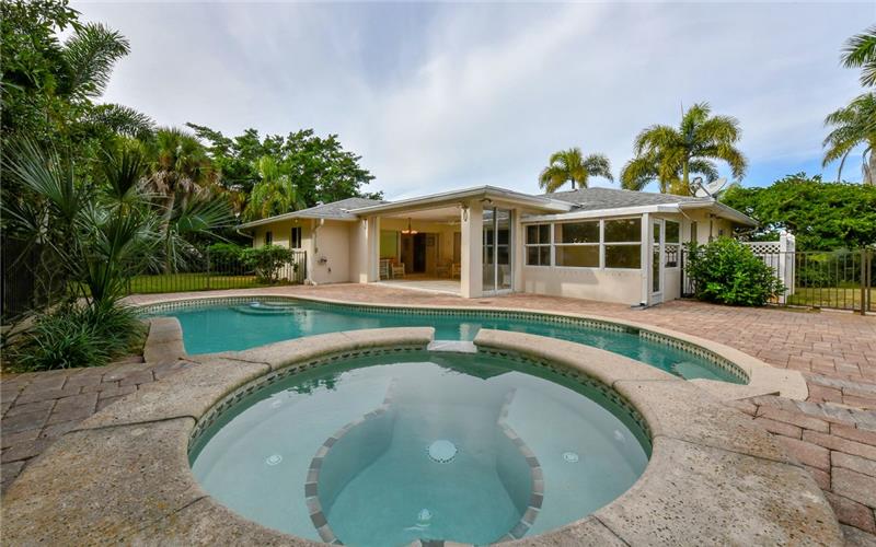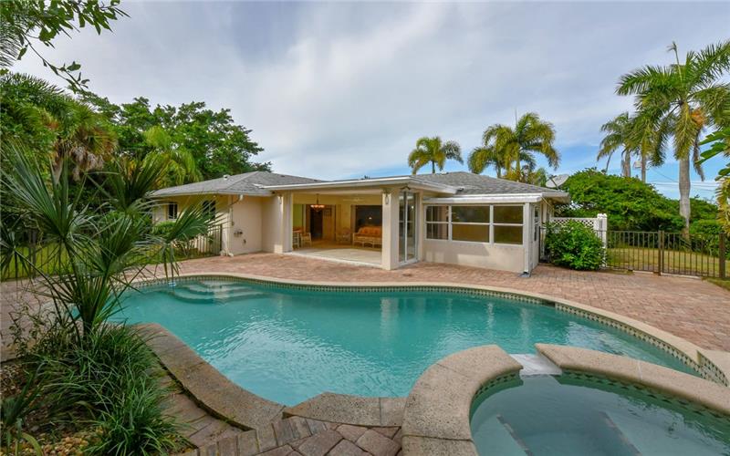 Casey Key, but very private down this magical lane called Cutlass Bayou and which is only a short distance to Blackburn Point Road bridge for an easy on and off the island. This three-bedroom two bath waterfront home was recently updated with Travertine floor tile in the main living areas, new pool heater, new pool fence, and a new flat roof over sun-room in 2018. Great open spaces with the living area opening to the large sun-room and that to the pool area. There is a circular pavered driveway, a two car plus a one car garage and a carport and even a covered area for your water toys.