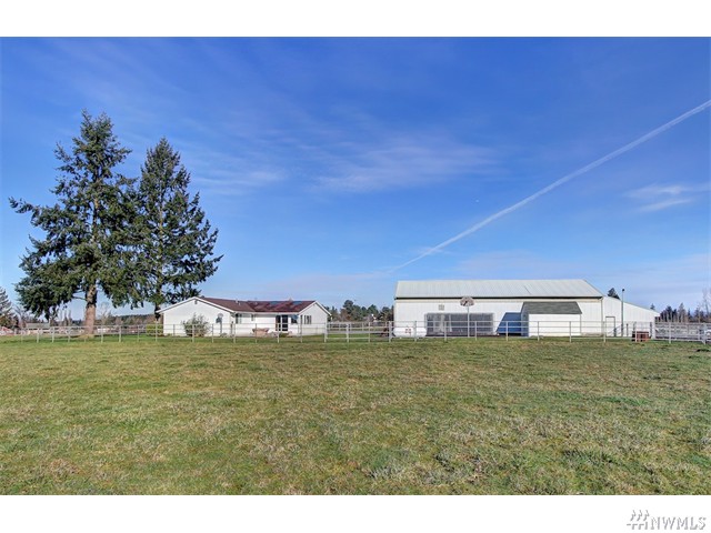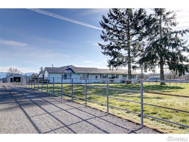 A "gem" of a rambler on dry five acres, 40 X 70 shop with loft storage & additional attached 16' loafing shed, plus a 24' x 24' storage building. This fully functioning equestrian property features a loafing shed, multiple plumbed horse troughs, custom galvanized fencing and gates with multiple pastures. Features include a recently updated kitchen and bathrooms; with 2 master bedrooms, and a large family room with fireplace and patio. Seller offering one year AHS home warranty.