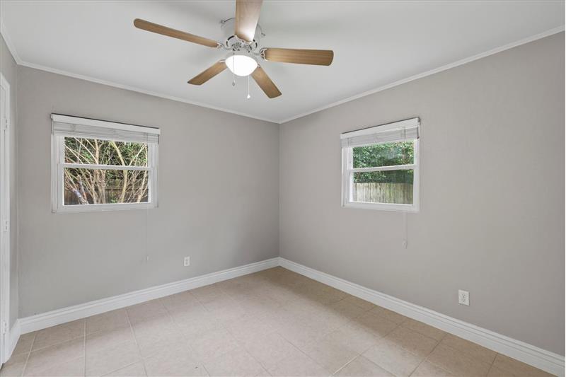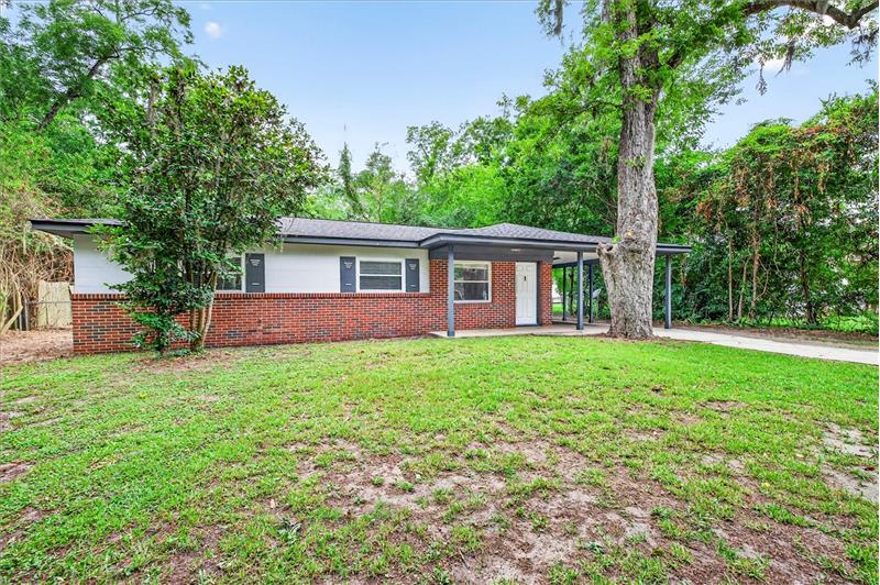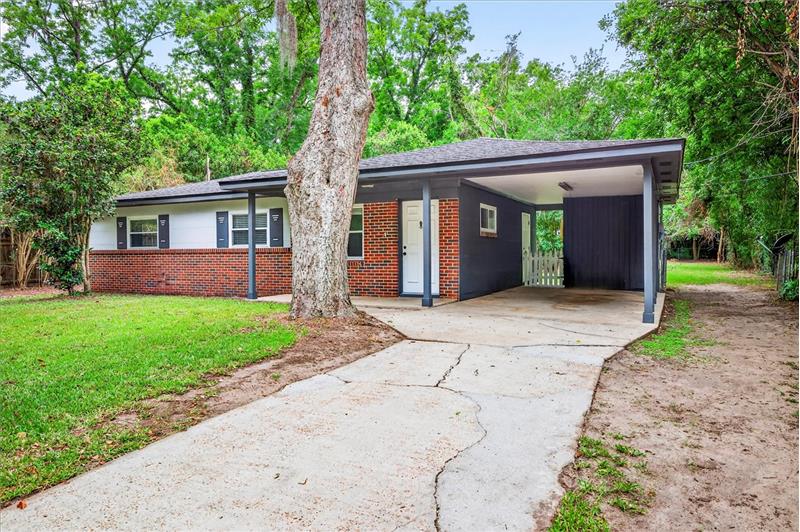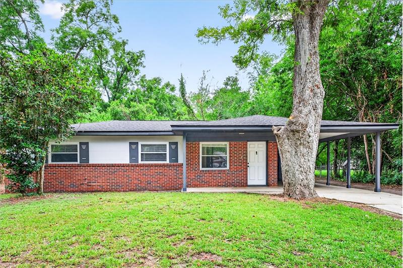 Charming and move-in ready 3bed/1bath concrete block home with carport. Situated on a nice 0.36 acre lot with a huge fenced-in backyard. Brand new interior paint job. Tile flooring throughout entire home. Roof from 2017. HVAC, water heater and windows all replaced in 2010. HVAC system was recently cleaned and serviced (June 2025). Septic tank and drain field was recently pumped and inspected (May 2025). Updated kitchen countertops, light fixtures and ceiling fans throughout. 14'x12' metal storage shed. Great location just a short drive to downtown, shopping, Fred George Greenway Park and more!