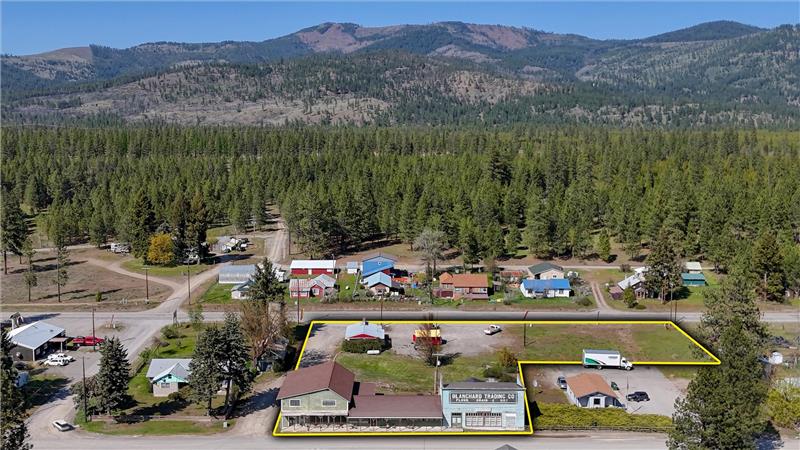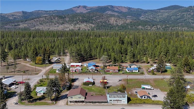 Don't miss this unique chance to own a significant piece of Blanchard's past! Constructed in 1908, the landmark Blanchard Mercantile offers an expansive 12,505 sq ft of space on 1.84 acres. Historically, a central point for commerce, community, and connection, it originally started as the Blanchard Trading Company in 1912 and was instrumental in the town's growth. The property retains its historic appeal with original hardwood floors, sizable windows providing views of Mt. Spokane, and distinctive architectural elements.