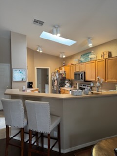 Detached 3 bedroom, 2 bath home, with 2-car garage and community pool. Close to 101 and San Tan 202 freeways, Chandler Mall, Intel and Microchip. New AC 2021. New exterior paint in 2023 Vaulted ceilings and sky lights make it feel very spacious. Tile and laminate wood floors through out. Owner's suite is split. Covered patio in back with easy care yard and gated courtyard in front. Stainless side by side refrigerator, new in 2022 plus washer-dryer included. Gated community. No pets. Available for move in03/31/2025