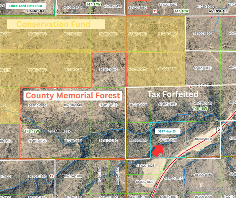 40 Wooded Acres in Holyoke with 3 Cabins on Nemadji River